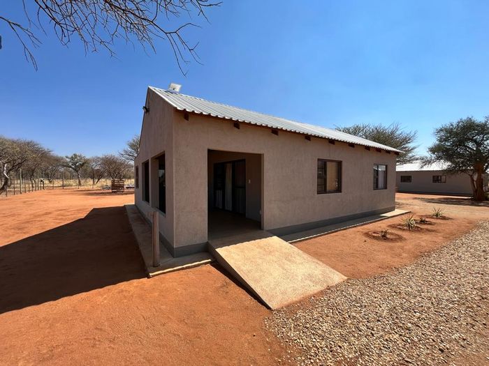 Weekend retreat living on 130 ha free-standing farmland 80km from Okahandja, perfect for small-scale farming and game viewing — boreholes (5–21 m³/hr) and stock-proof fencing.