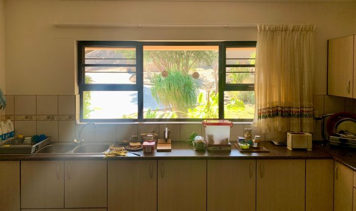 Enjoy convenient family living within walking distance to Smarties mall in Okahandja, with a bachelor flat for guests, modern kitchen, and drive-through garage; three beds, two baths.