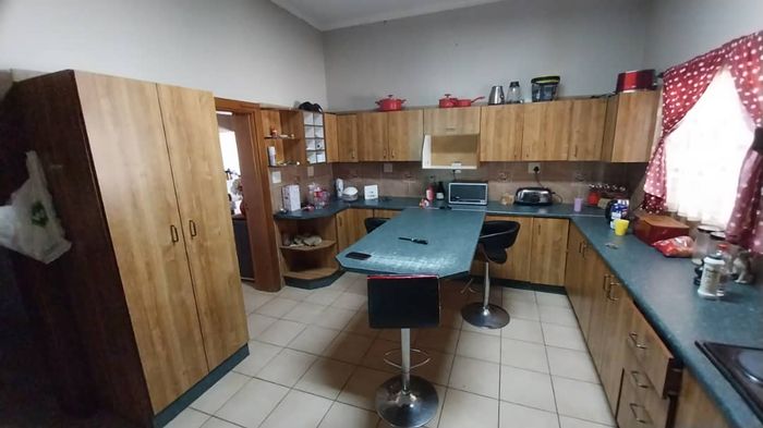 Relaxed family living in Okahandja, close to town amenities, with sunlit open-plan kitchen/lounge/dining and a covered stoep — three bedrooms, two baths, single garage.