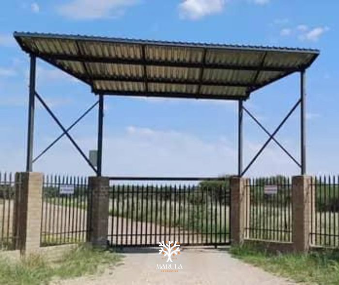 5-hectare rural residential plot for sale near Okahandja, equipped with water and electricity, fully fenced, secure access.