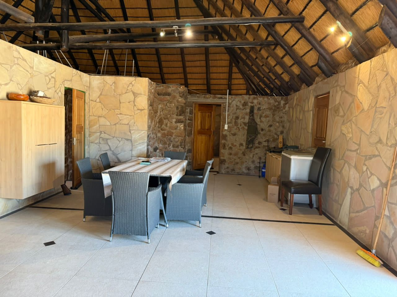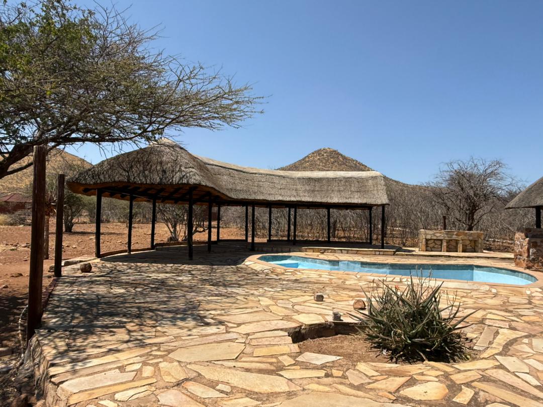 In essence: Farm is a 4,740ha farm near Outjo, fully fenced and well-developed with guest lodge facilities, staff housing, water/electricity infrastructure, and prime tourism potential due to proximity to Etosha National Park.