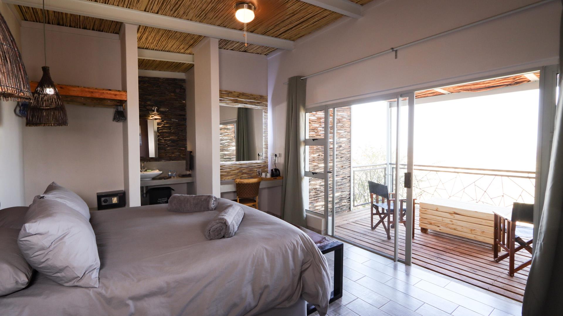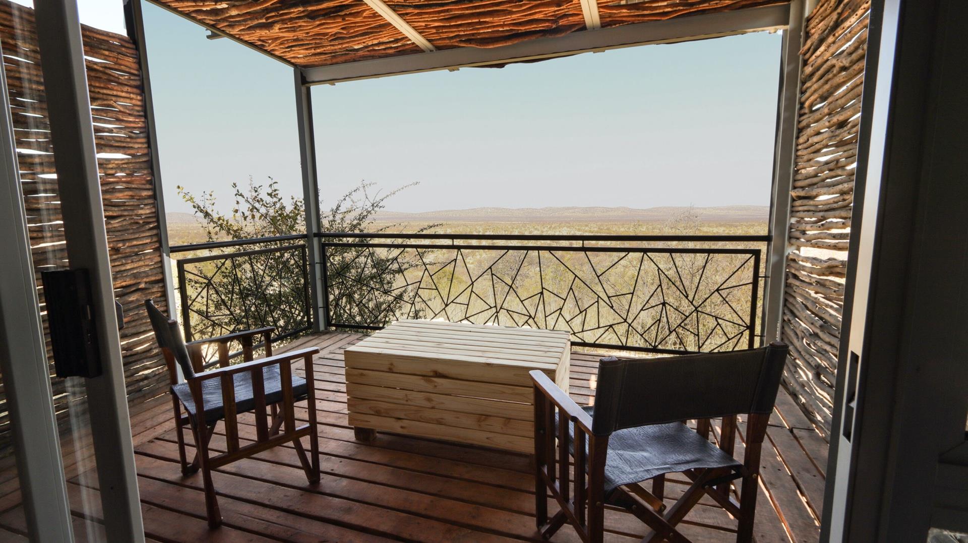 * 6 modern, luxury chalets with en-suite bathrooms and private balconies overlooking a waterhole