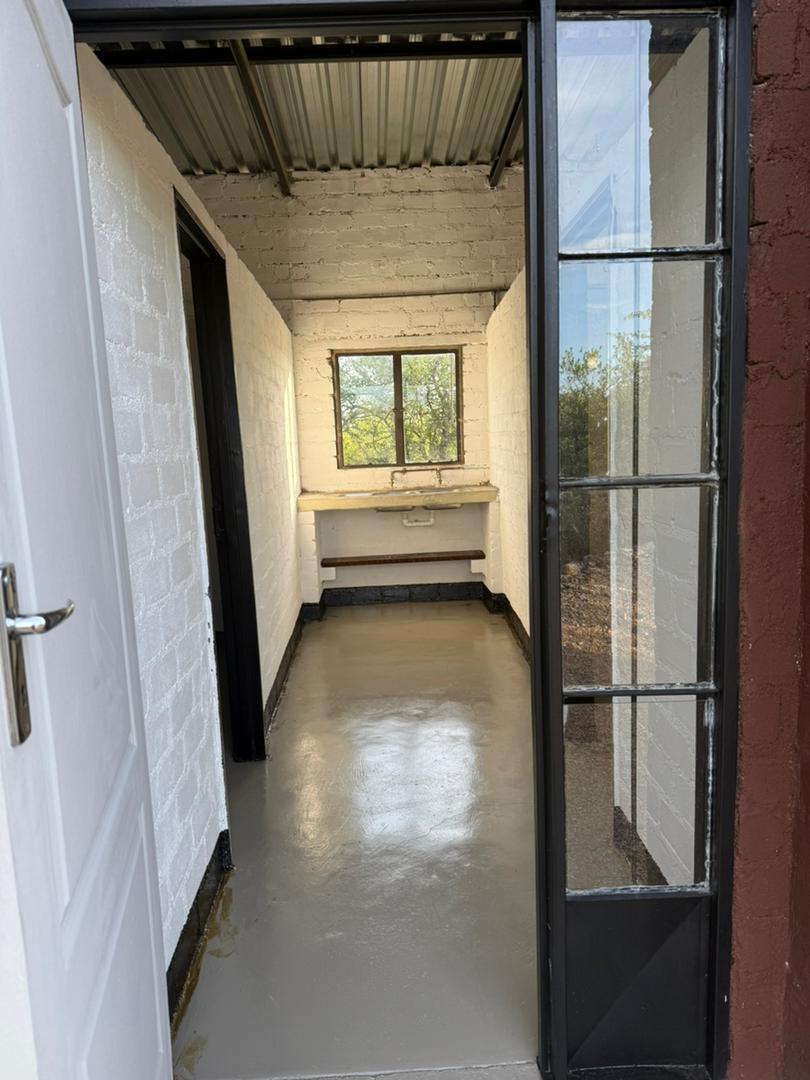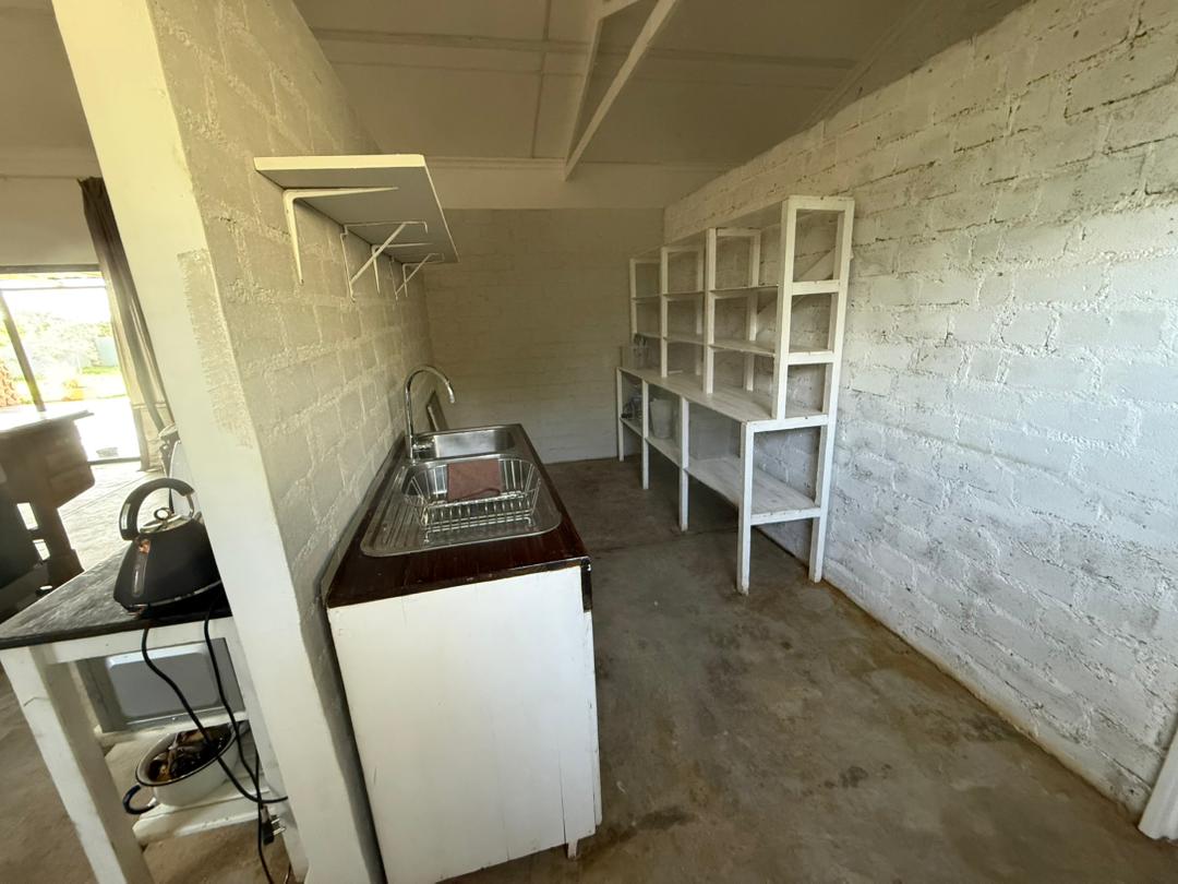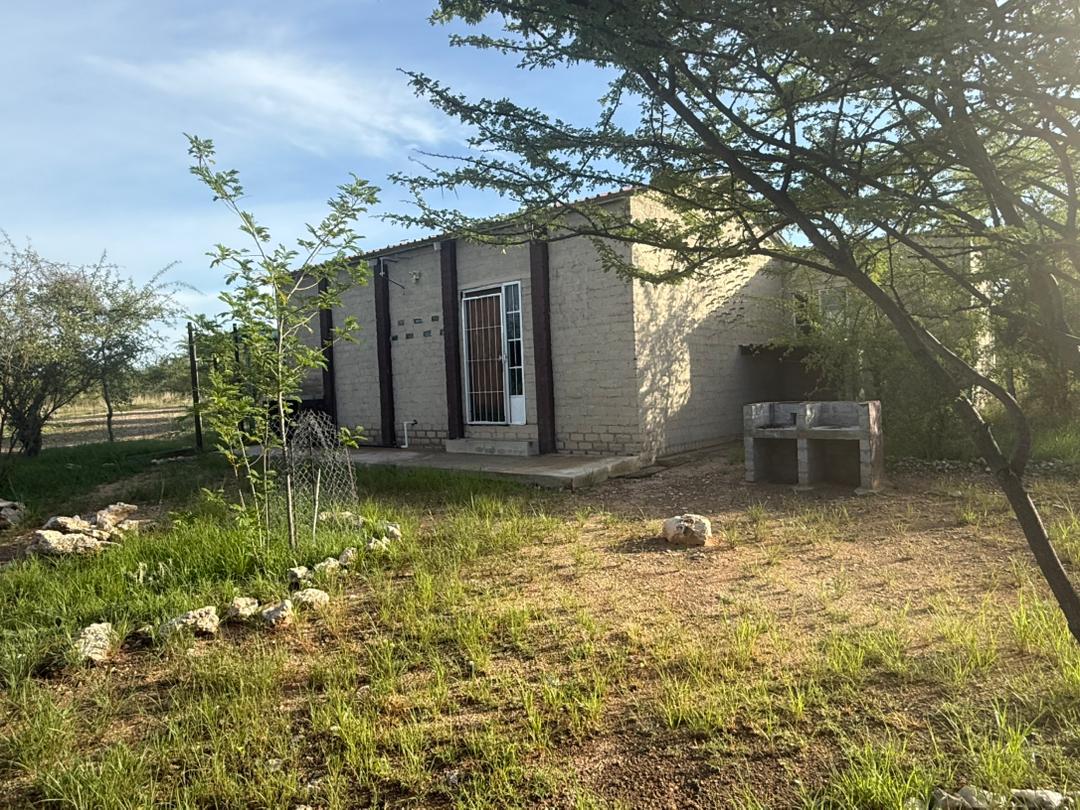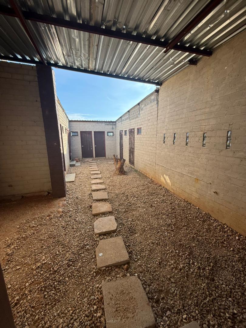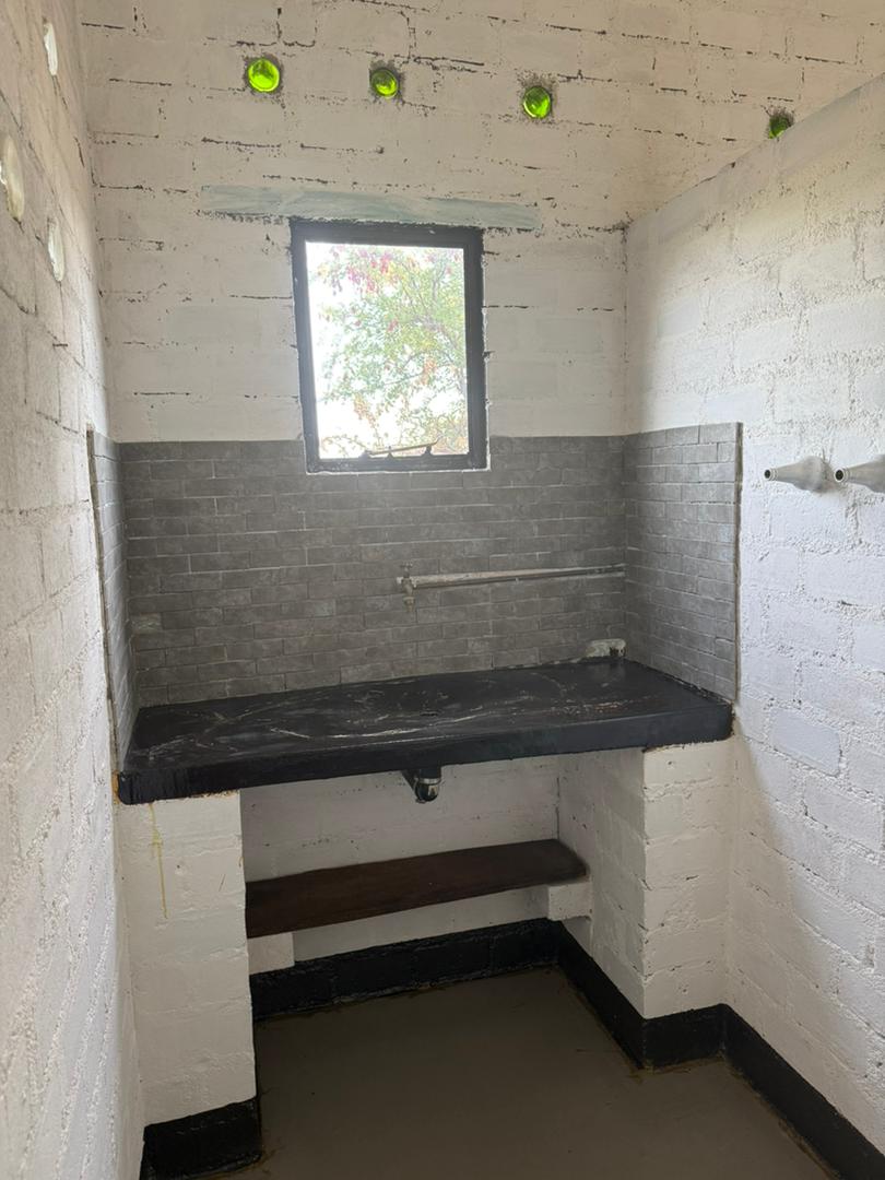 1 2 x bedroom with basic solar, toilet, sink & shower. Tall surrounding fence.