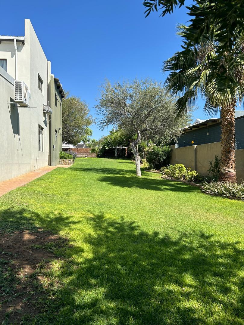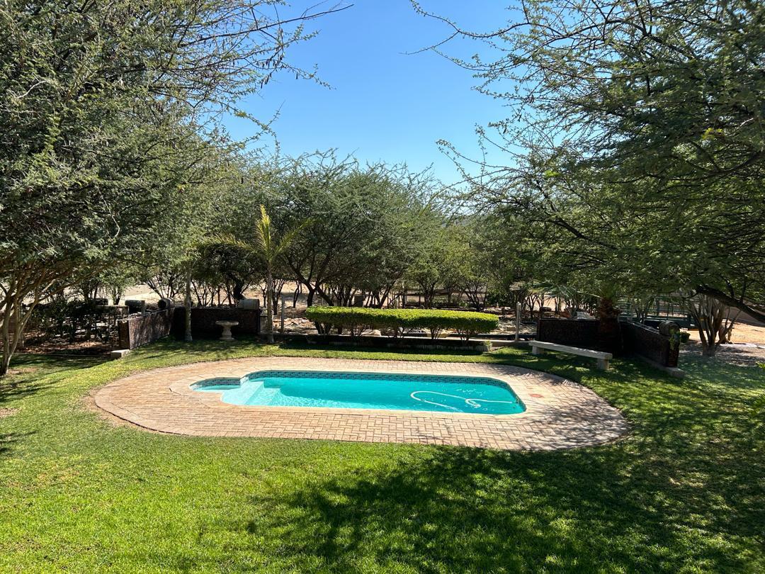 Step outside to a beautifully landscaped garden surrounding a sparkling pool, offering a serene oasis for relaxation.