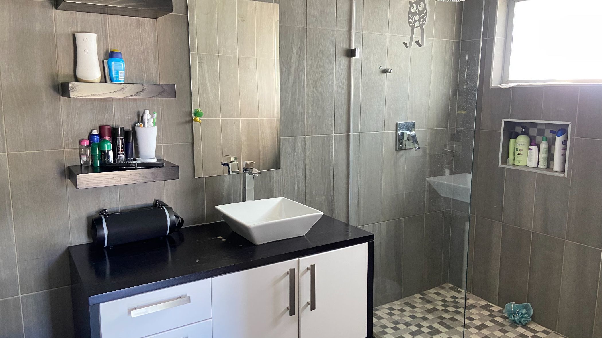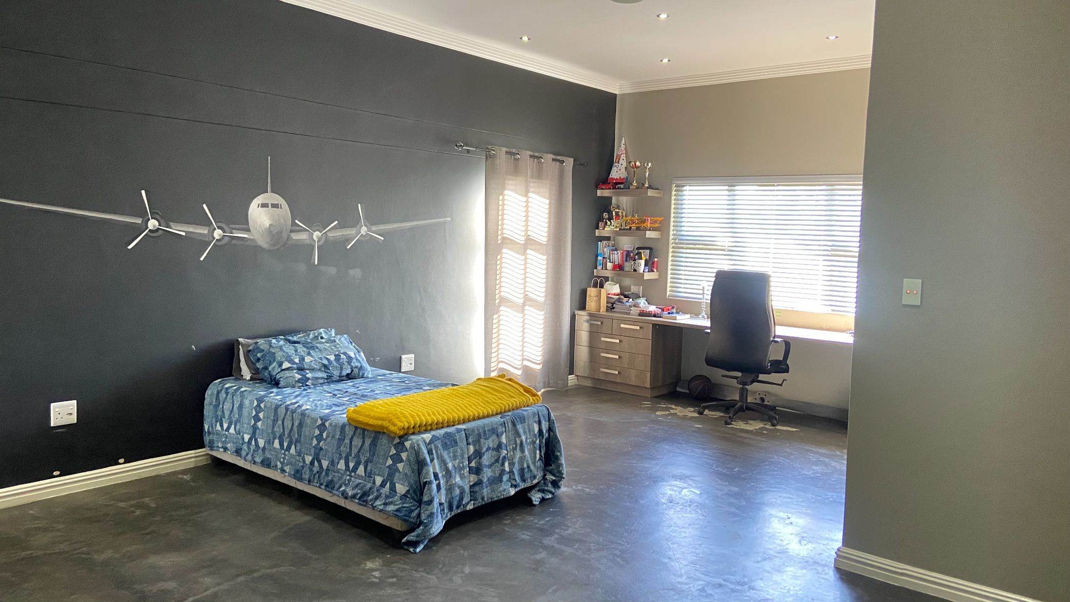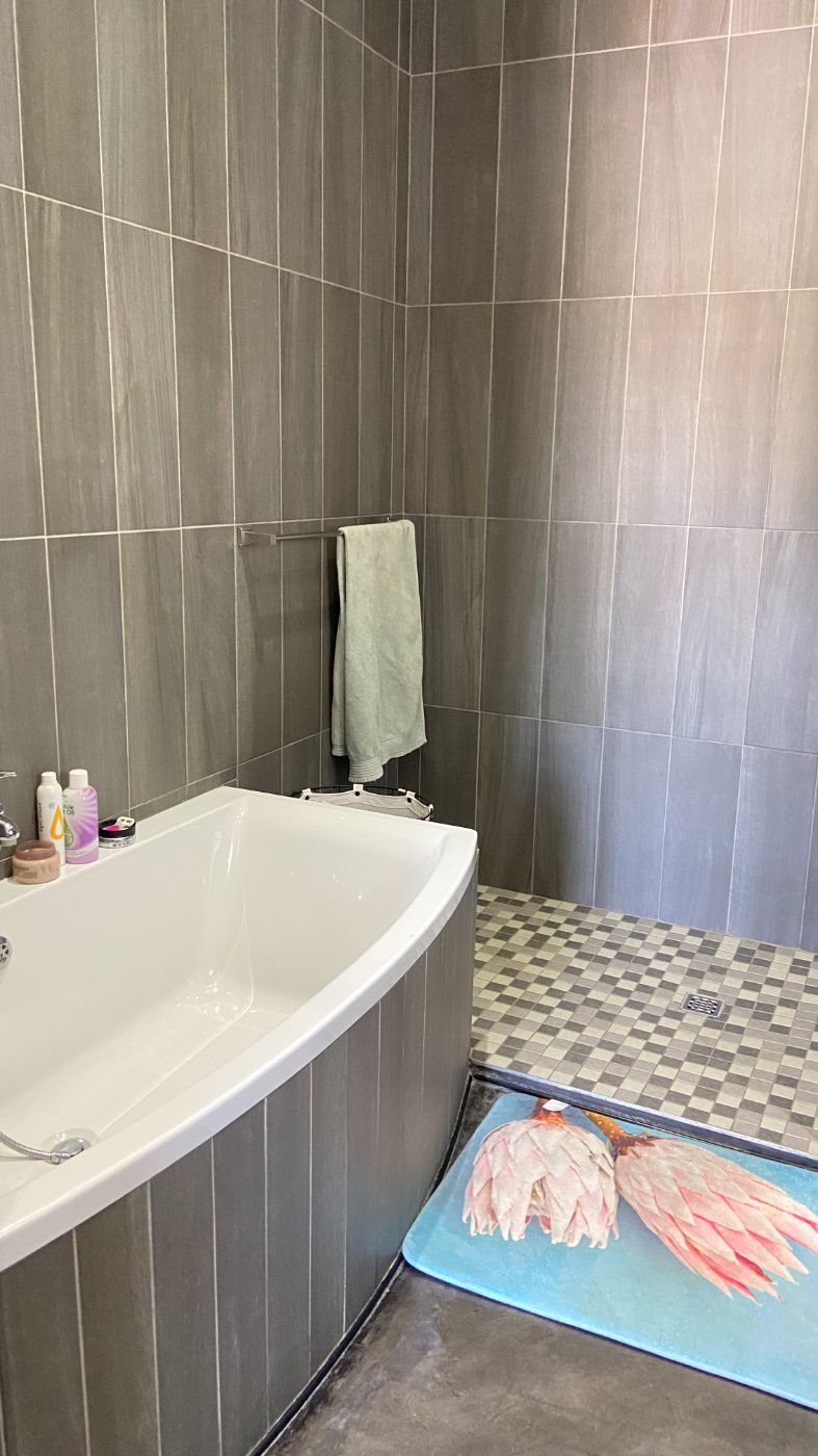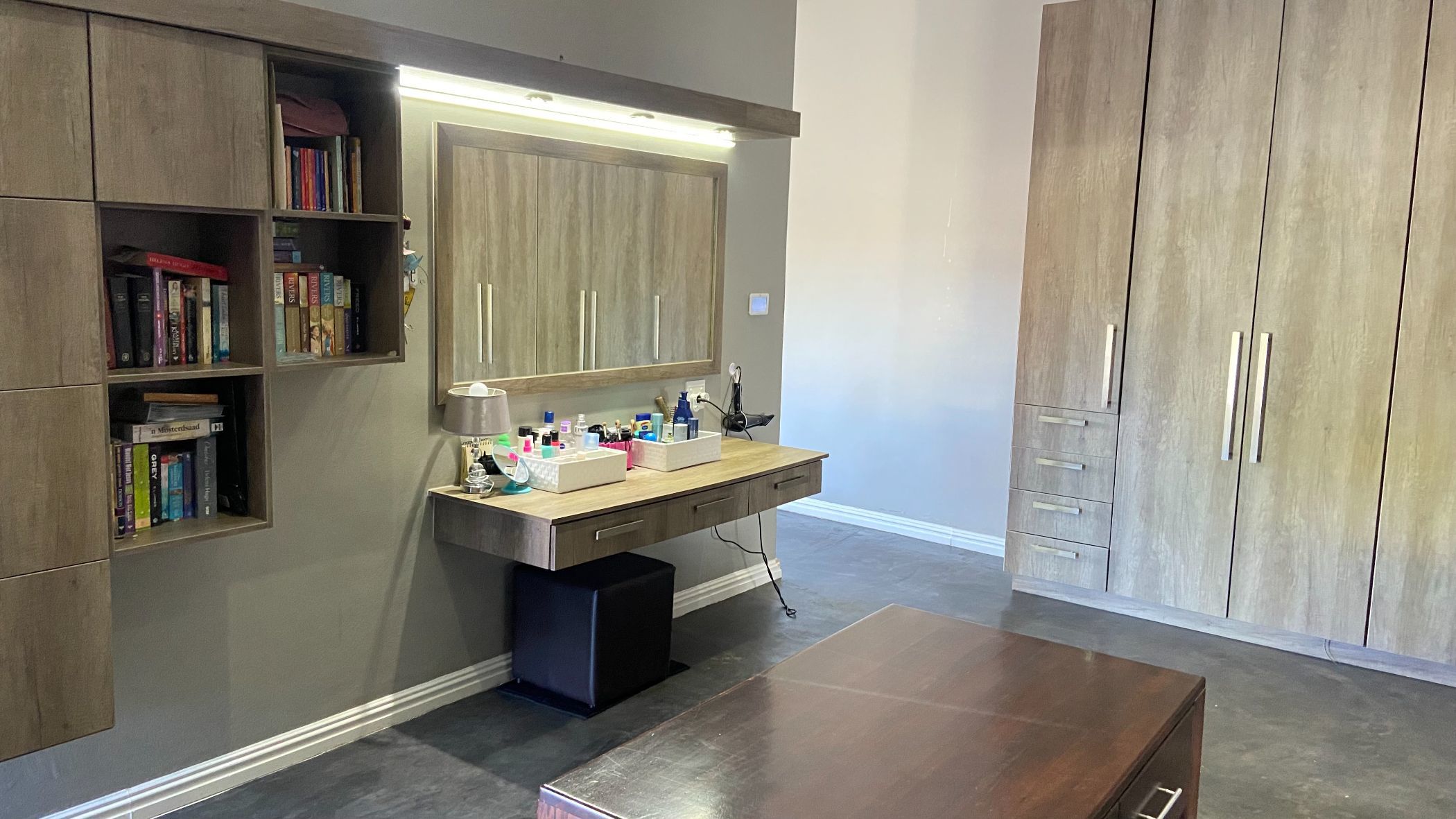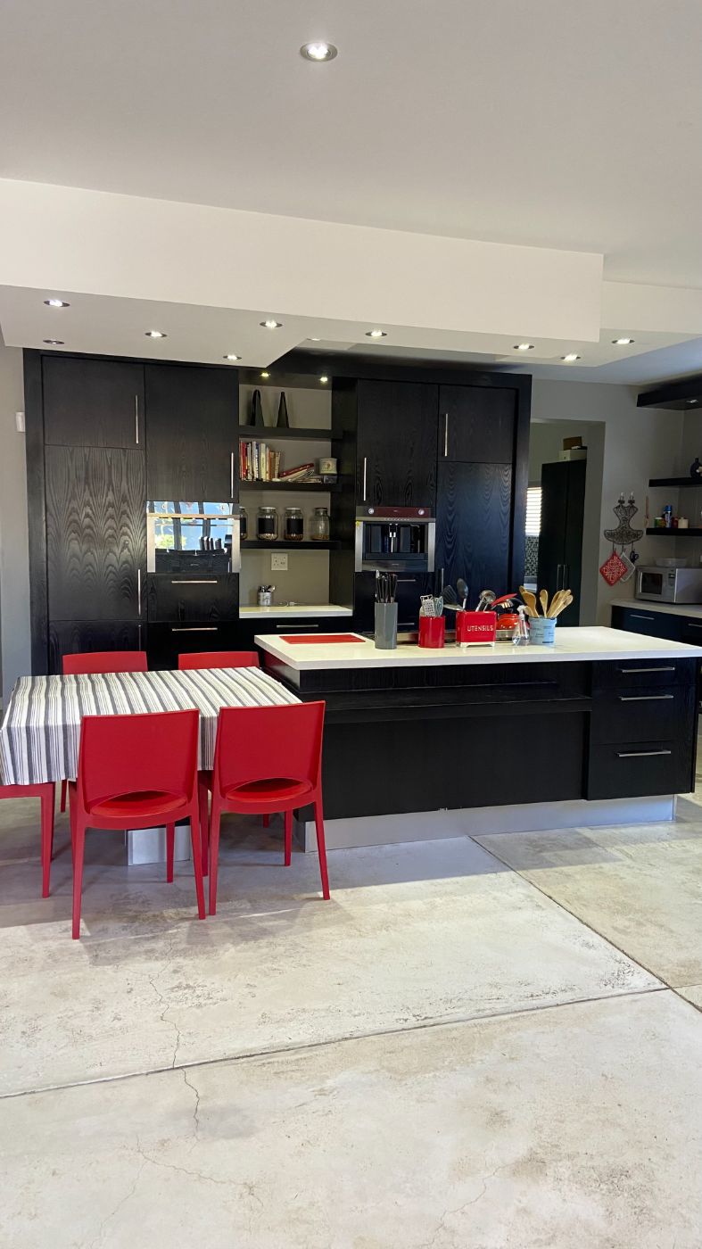 Huge property under roof on a big erf. Can be ideal for larger families. Downstairs living area offering modern kitchen with fitted appliances , scullery and big pantry. Dinging area. Entertainment area with bar, two BBQ's and pizza oven. Stacking doors leading out to swimming pool.