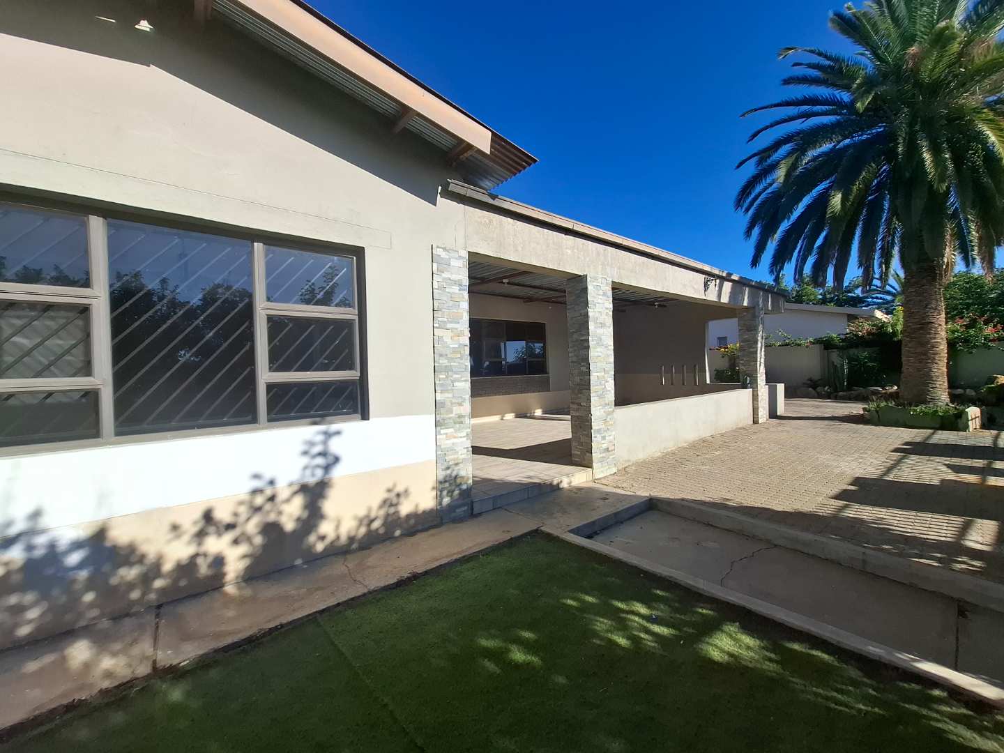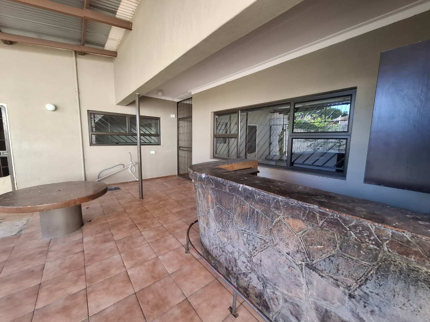 Outdoor living is equally impressive, with a covered lapa complete with a built-in bar and braai, all overlooking a sparkling pool. The garden is home to mature fruit trees, providing a tranquil, leafy setting. Additional features include a double garage, three carports, and good security throughout the property. While the home needs some TLC, it boasts a solid structure and fantastic potential for customization. This is a rare opportunity to secure a home with space, character, and incredible value in a sought-after area.