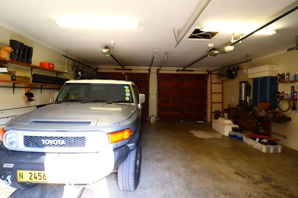 The property offers a double garage at the front and an additional double garage and single garage at the back, ensuring ample parking and convenience.