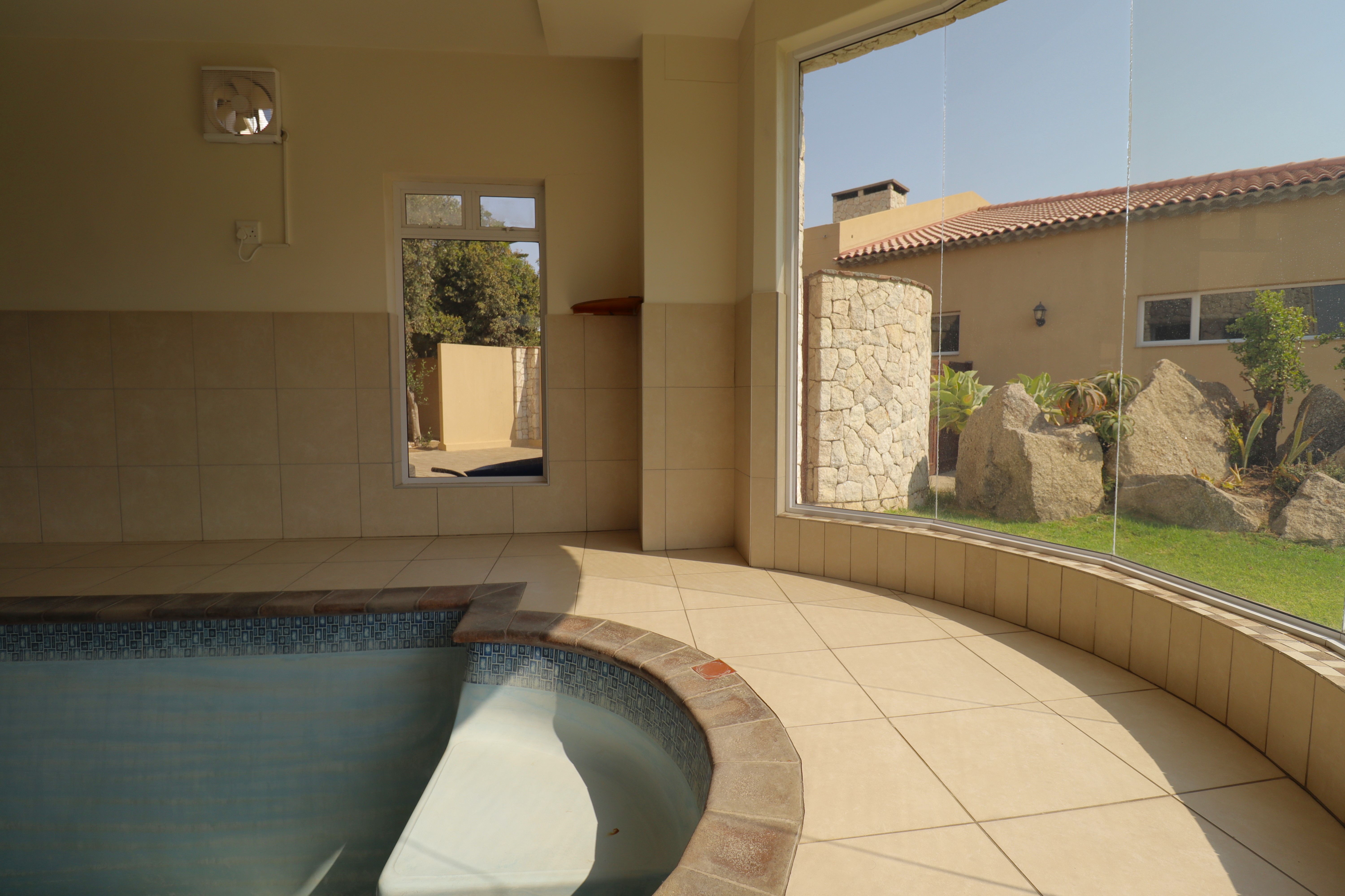 Under-Roof Solar Heated Swimming Pool with a Sauna and Shower