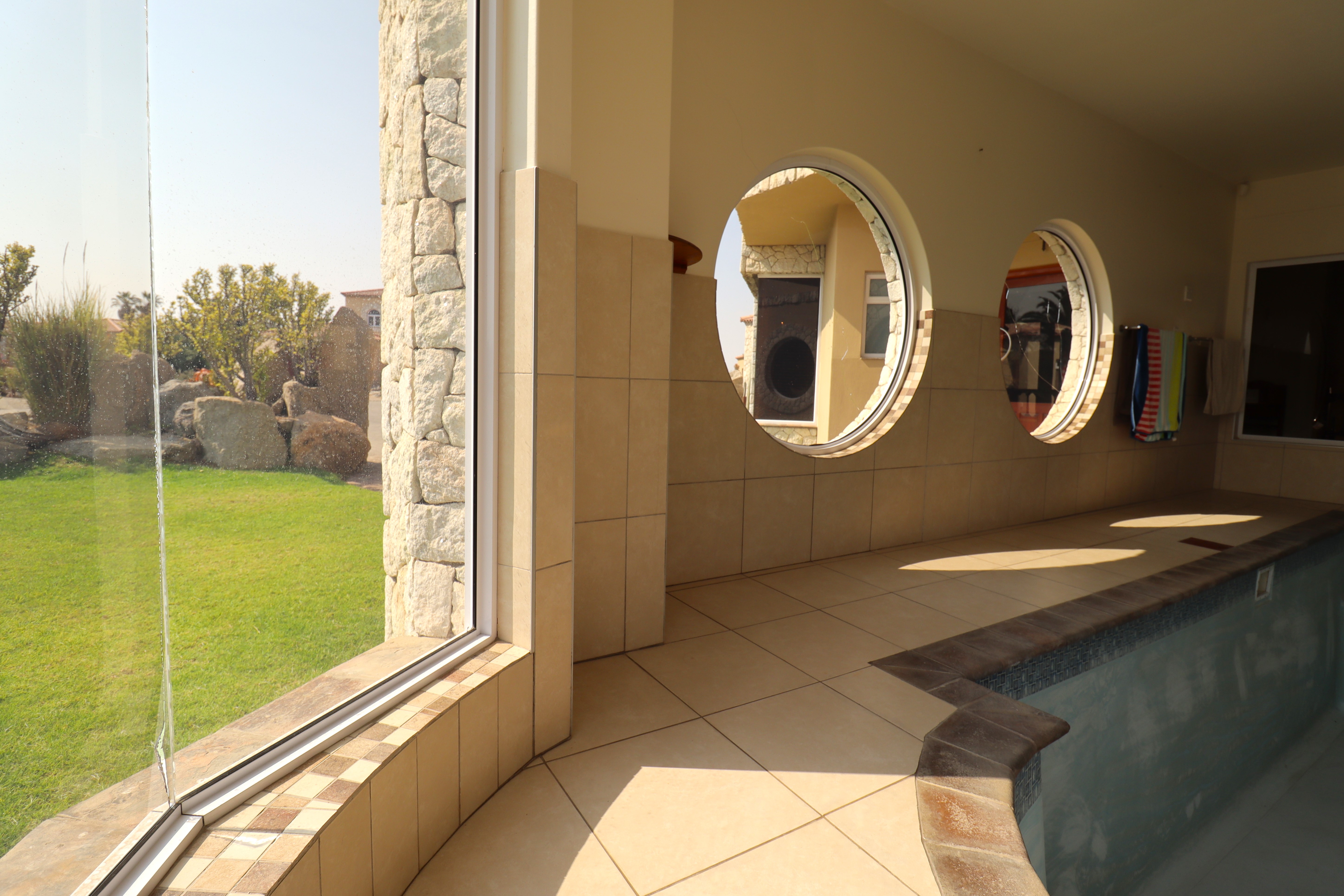 This luxury residence is located just outside Swakopmund within the secured Desert Golf Estate. Surrounded by lush, well-maintained gardens and the golf course itself, this is a wonderful setting for those who will enjoy nature, with free-roaming springboks as visitors.