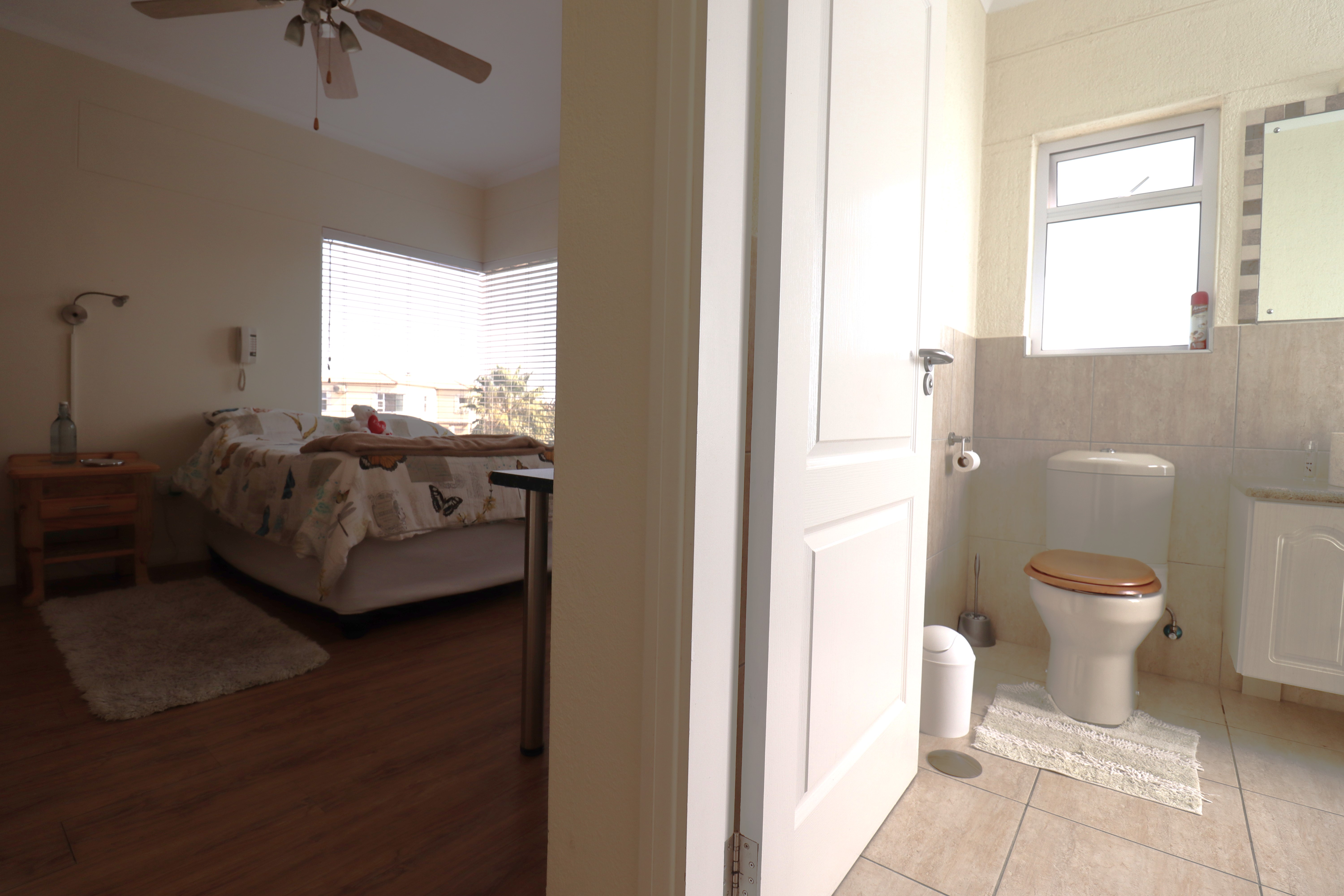 This flat includes one room with an ensuite bathroom, opening into the inner garden court and conveniently located near the side gate.