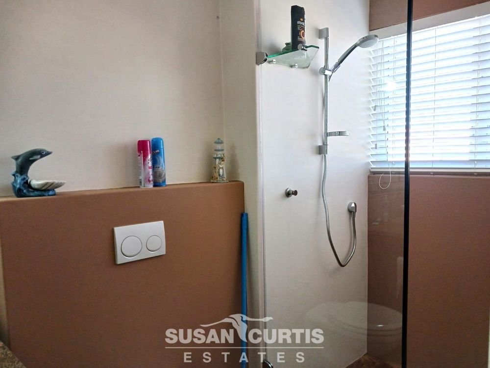 Upstairs, you will discover a private lounge/TV room that opens onto a charming balcony, offering a serene space to unwind. The master bedroom, complete with built-in cupboards, provides ample storage and comfort. It is accompanied by an en-suite bathroom, making it a perfect retreat after a long day.