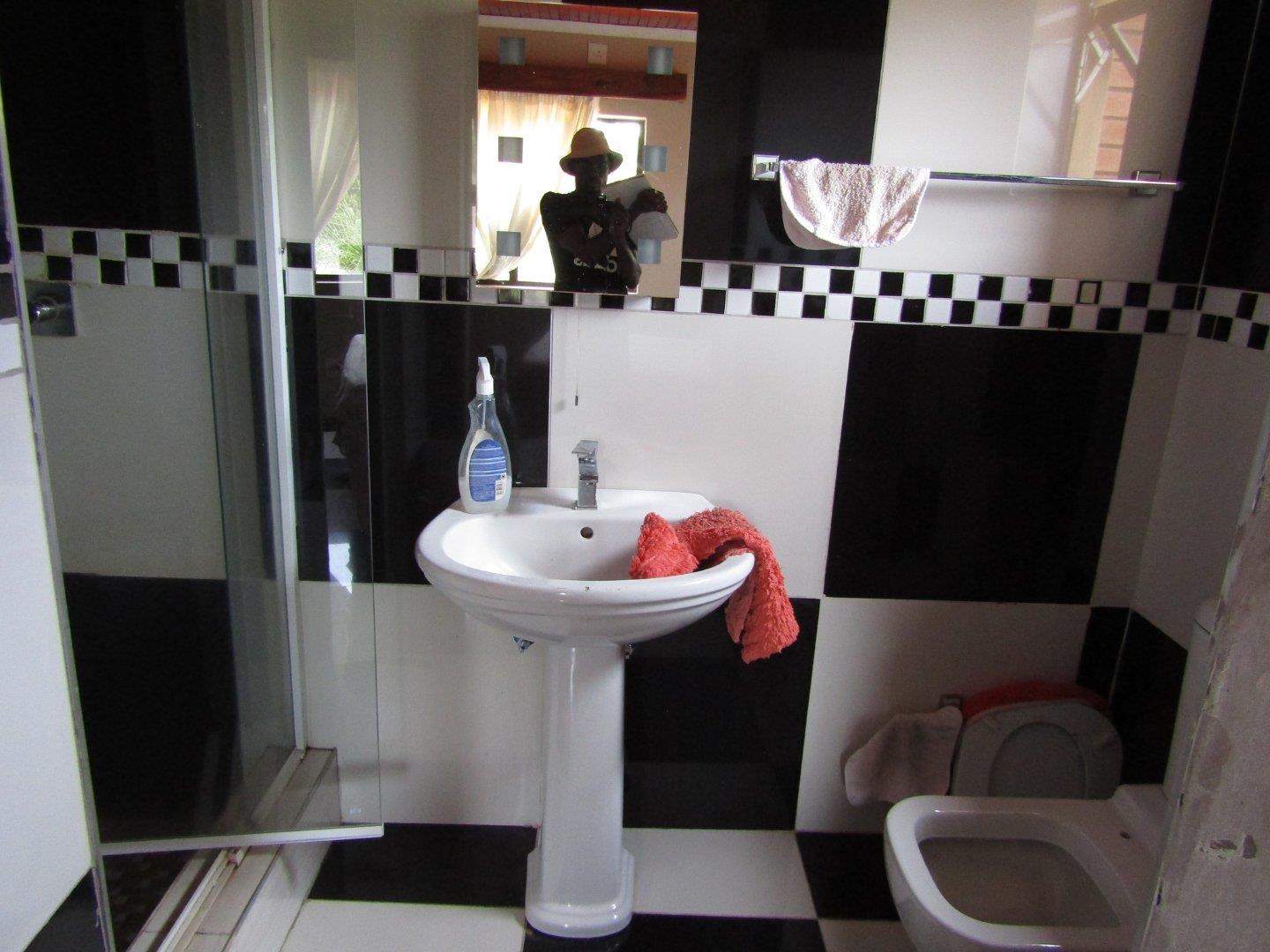 Main Dwelling This is a double storey building, comprises of a top floor and a ground floor. The roof is made of IBR roofing sheets on steel purlins/trusses on concrete face brick walls. Underlined with pine ceiling with a floor finish of ceramic wall tiles throughout the entire building. The walls are plastered and painted on the inside only. Aluminum framed windows and timber framed for the entrance doors and internal doors fitted with custom made doors and aluminum framed sliding doors for top floor balcony. All the windows are fully glazed. Accommodation comprises of- (Ground floor) • A Guest bedroom (en-suite) • Laundry room • Entrance passage • Kitchen with a pantry • 2x Bedrooms (en-suite) • A Bedroom with a storage room (en-suite) • A common Toilet (WC) • Dining area • TV room • Office • A staircase area • A Lounge