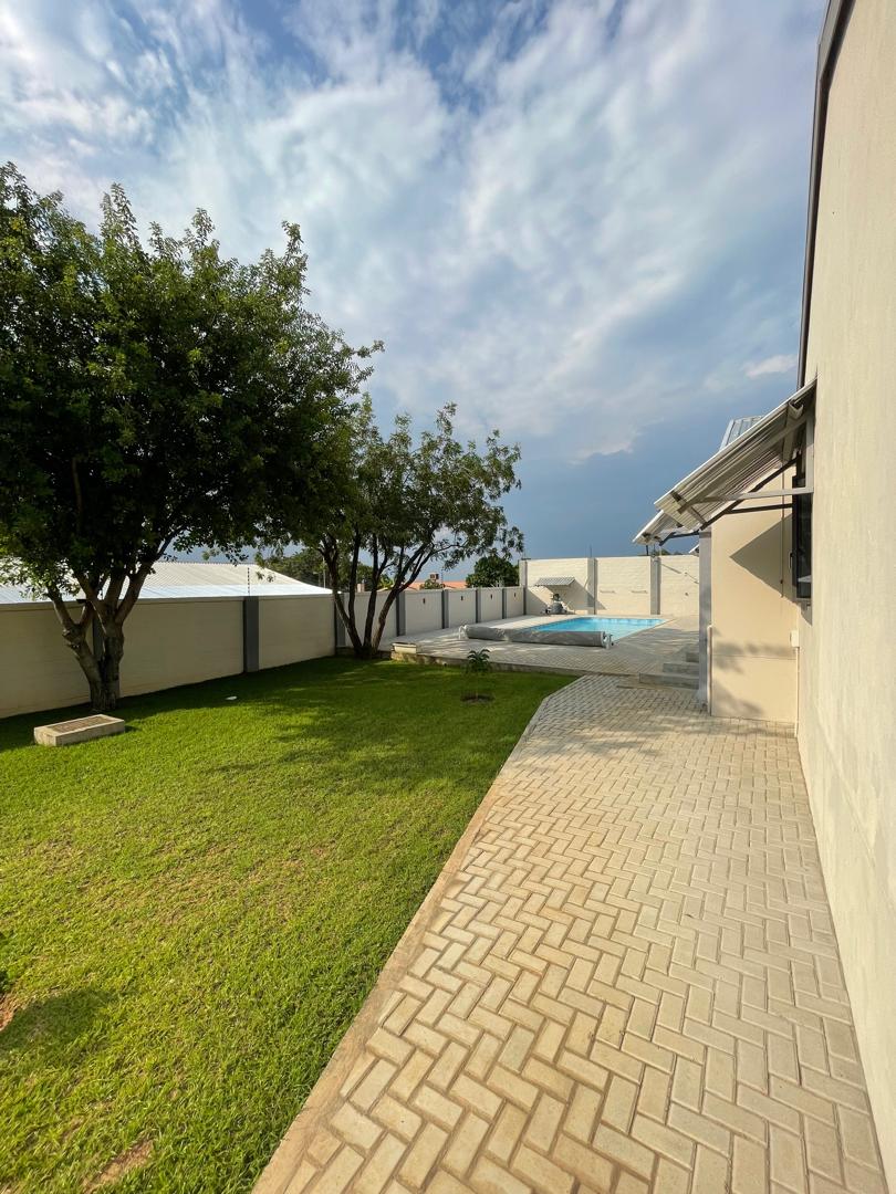 This spacious family home offers a lovely view of the Okavango River. It boasts a modern finished house with a well developed erf and garden, and many extras.
