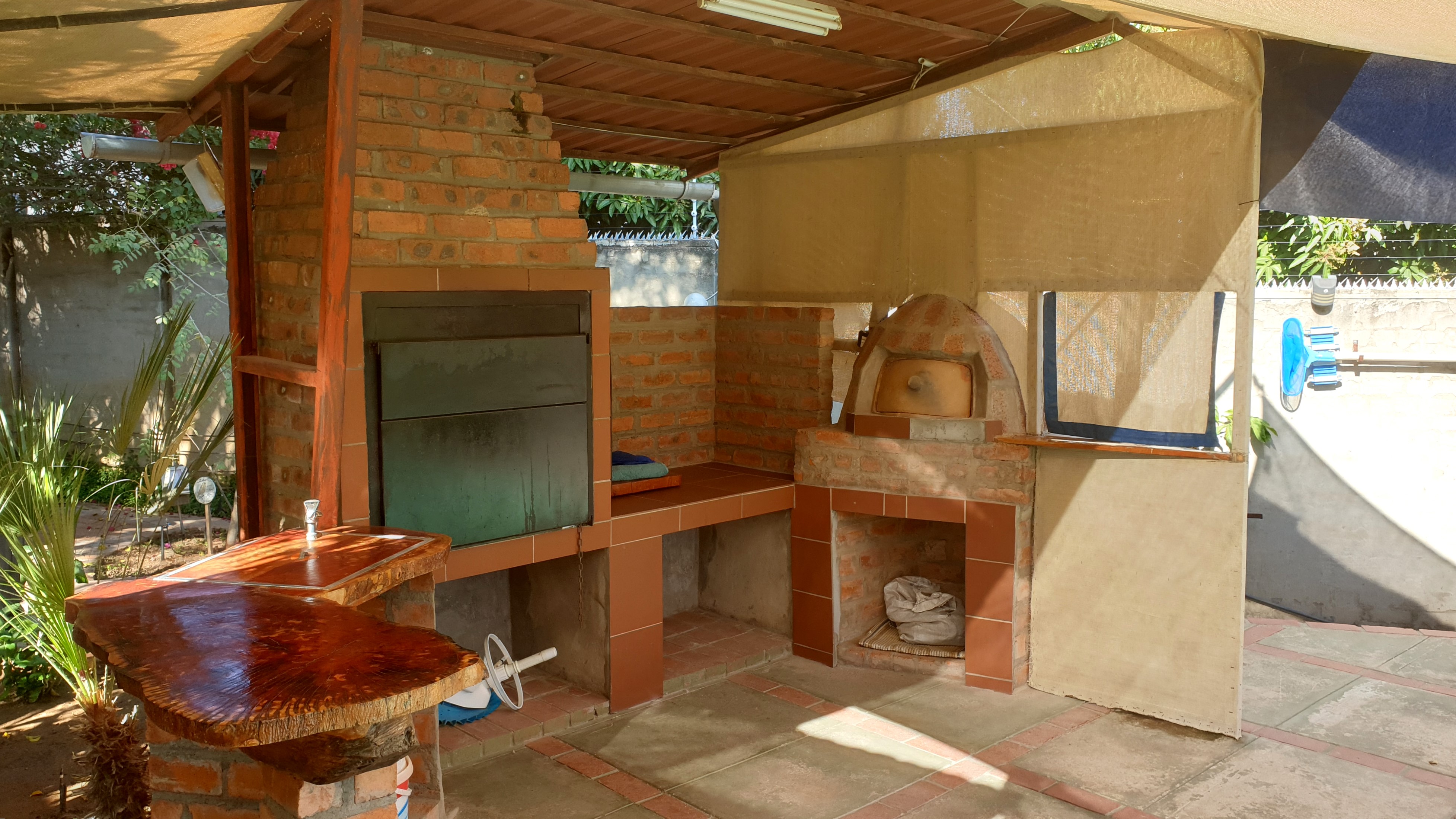 Beat the Rundu sun in the family-sized swimming pool. A covered entertainment area featuring a built-in braai, pizza oven, and a convenient counter with a sink.