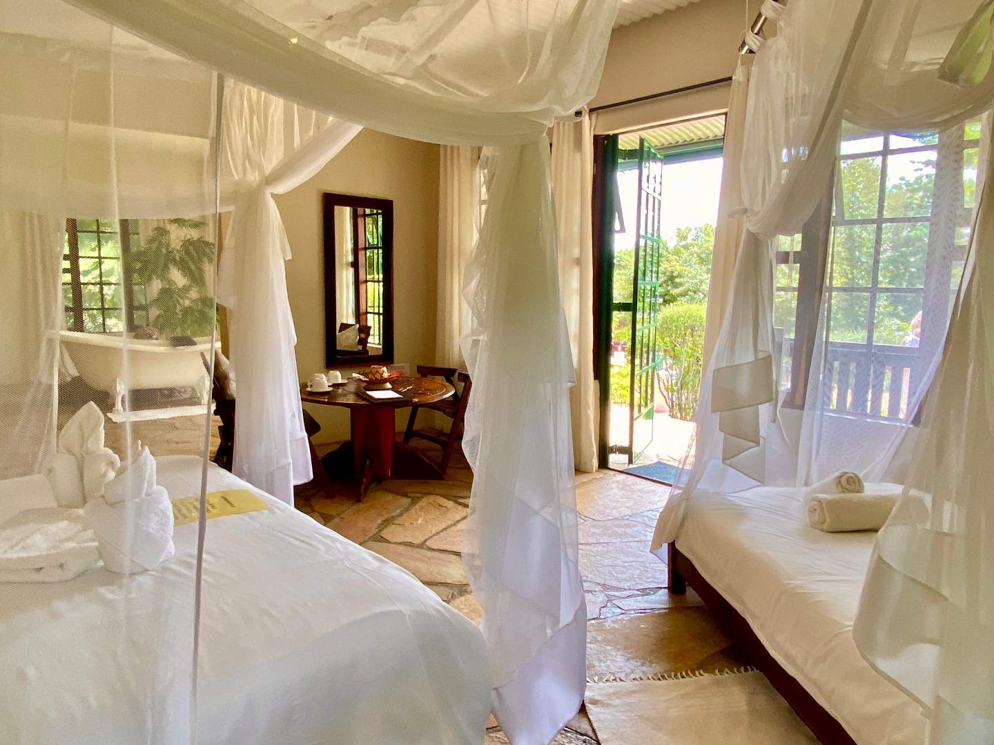 The lodge provides comfortable accommodation for up to 24 guests across eight rooms, all furnished with essential amenities such as air-conditioning, fans, fridges, mosquito screens on windows, and nets over the beds. Its well-equipped kitchen includes eight cupboards, chest-deep freezers, fridges, two gas stoves, and electric ovens. The restaurant features a fully stocked bar complete with a wine fridge and a point of sale system for convenient transactions. Additionally, the entire property is powered by solar energy, ensuring sustainable and eco-friendly operations.