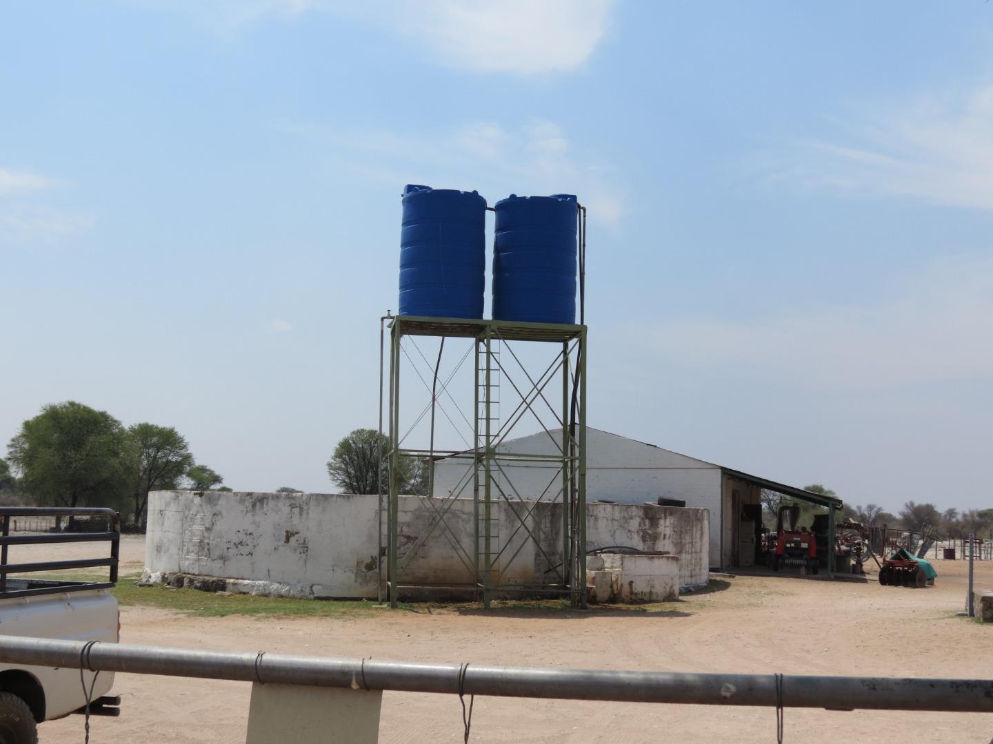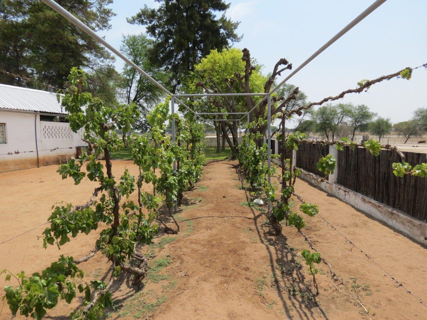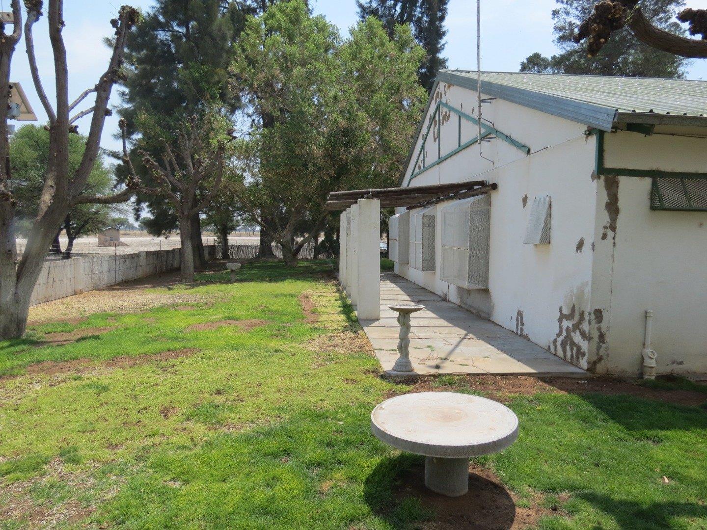 With 4,514 hectares of land, the property offers immense potential for game farming or livestock endeavors. The natural environment thrives with a variety of wildlife, including Oryx (Gemsbok) and cattle, highlighting its potential as a flourishing game and stock farm. A well-maintained garden, supported by an efficient irrigation and sprinkler system, ensures lush green spaces within the arid landscape. The entire property is fully fenced, providing secure boundaries for this vast expanse.
