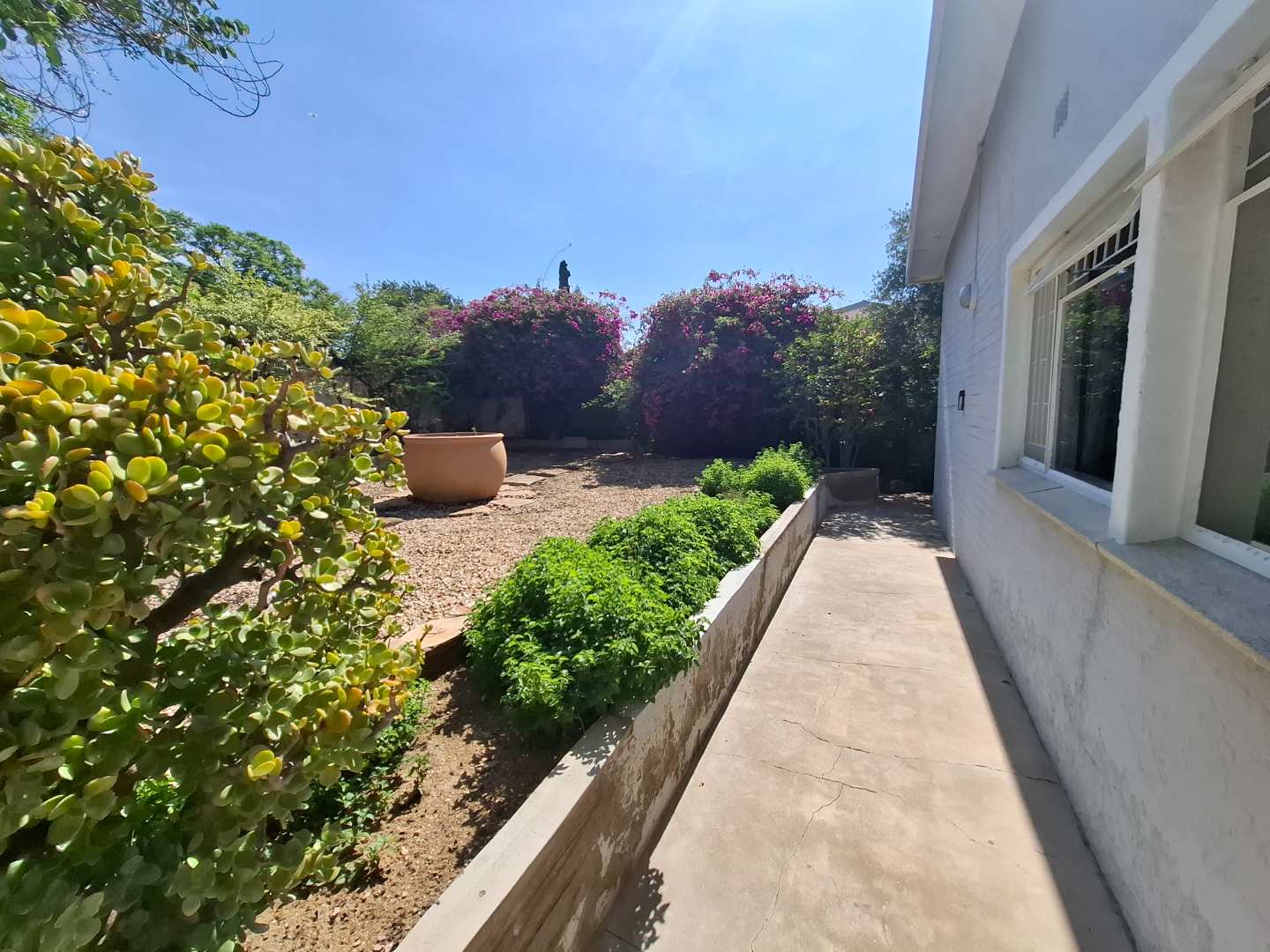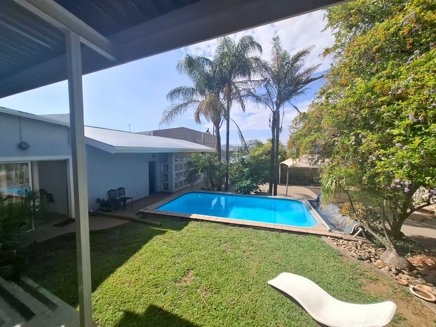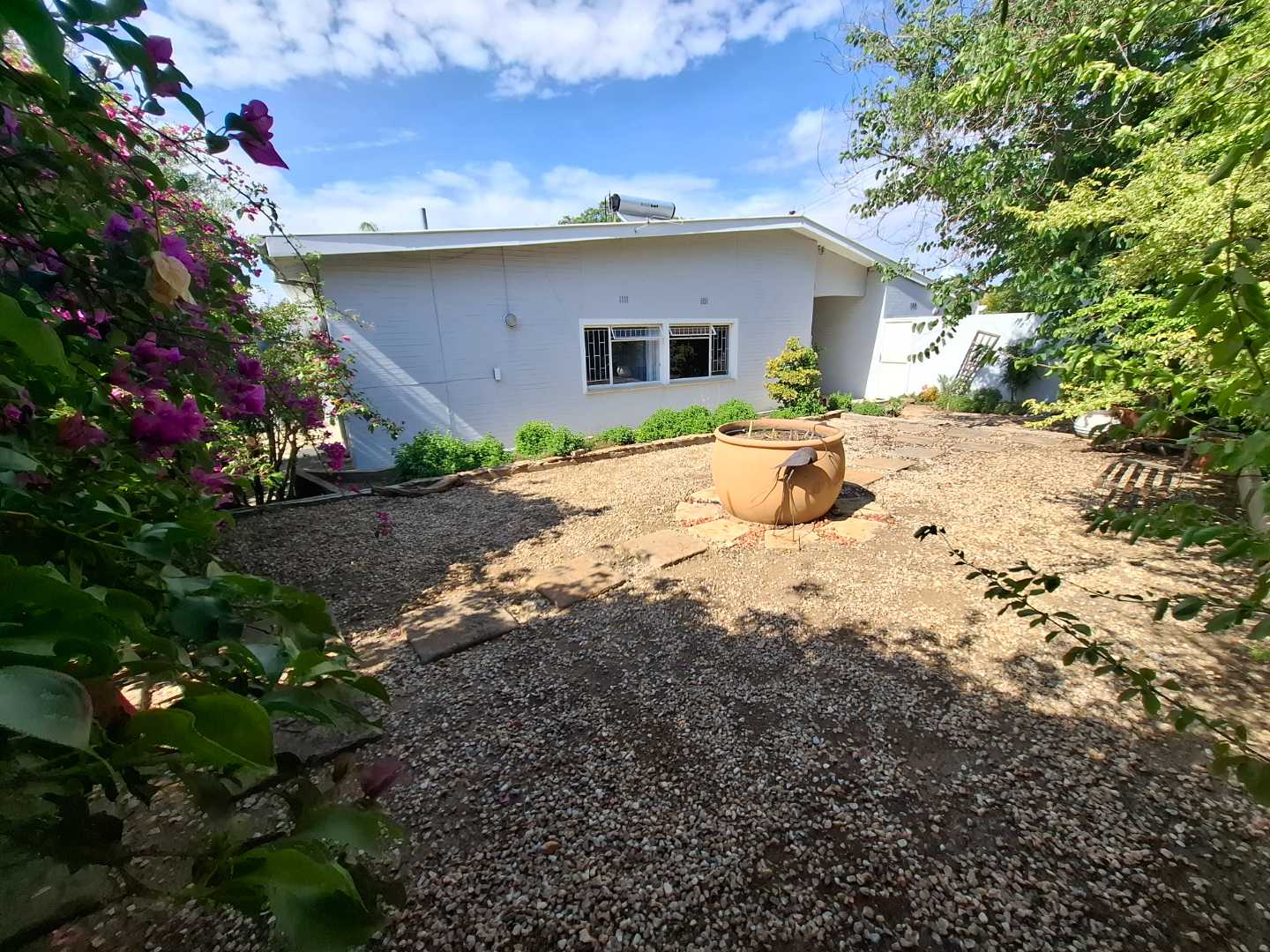 For those who love to entertain, this home has a separate BBQ room complete with a built-in bar, perfect for hosting friends and family. The sparkling pool is beautifully maintained and offers a perfect spot to unwind during the warmer months. While the kitchen is older, it is well-maintained with plenty of cupboard space, and there’s also a separate laundry room and a spacious pantry for added convenience. A standout feature of the property is the large 98sqm bachelor flat, which is modern and stylish, with exposed roof trusses and an open flow to the garden and pool area. This versatile space is ideal for older parents, teenagers, or as a home office. There is ample off-street parking, with three carports and a double garage, ensuring plenty of space for vehicles. The garden boasts several fruit trees, providing fresh produce right from your own backyard. The home is also equipped with a solar geyser, helping to reduce energy costs. Viewings are available by appointment on weekdays between 09:30 and 16:30. Clients with pre-approved financing are welcome to schedule a viewing.