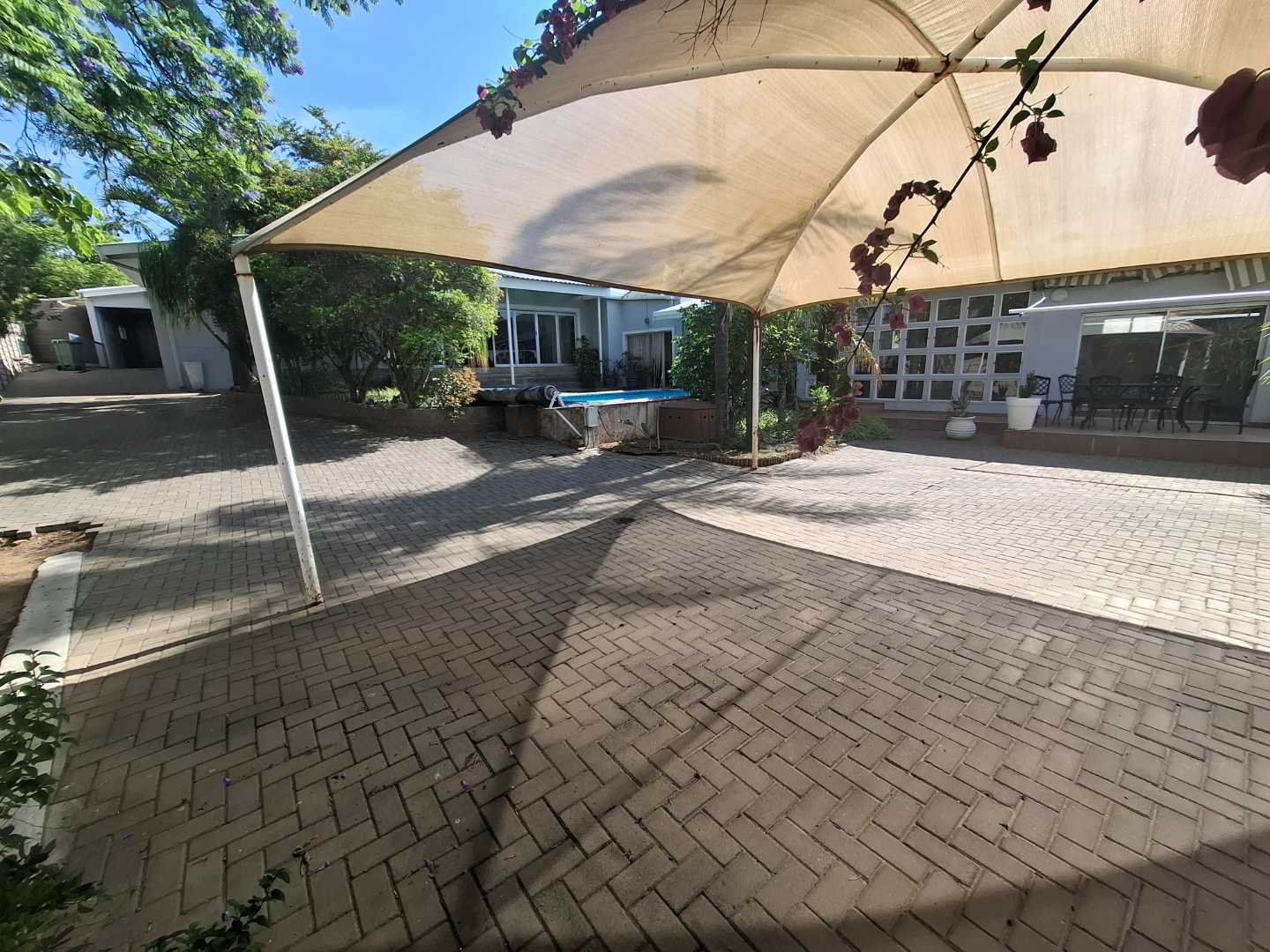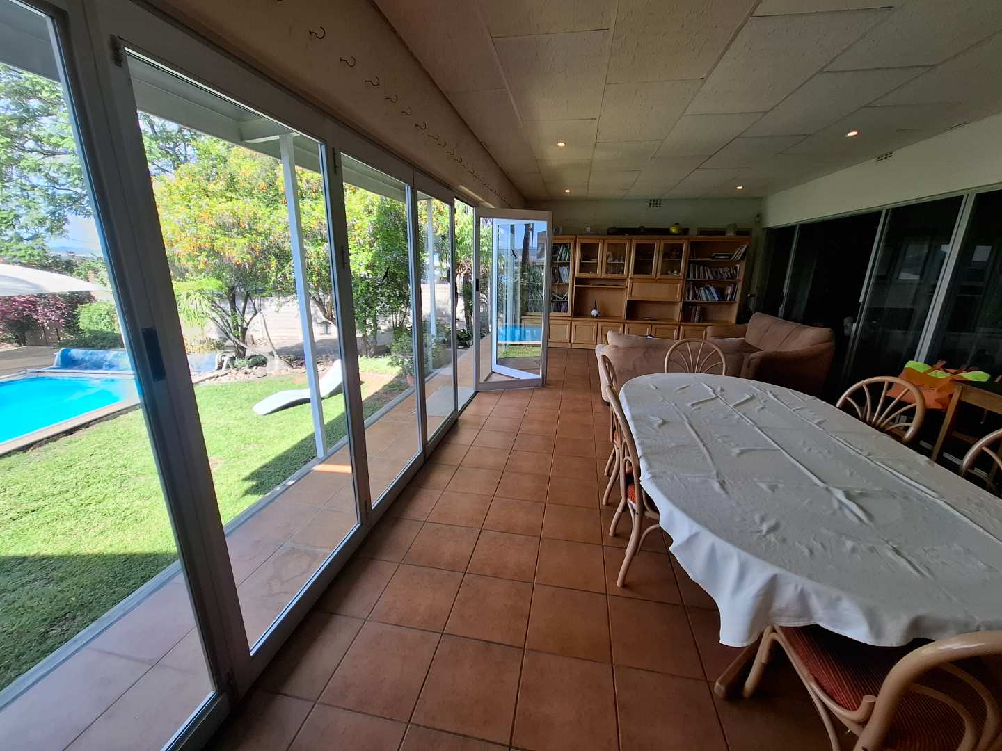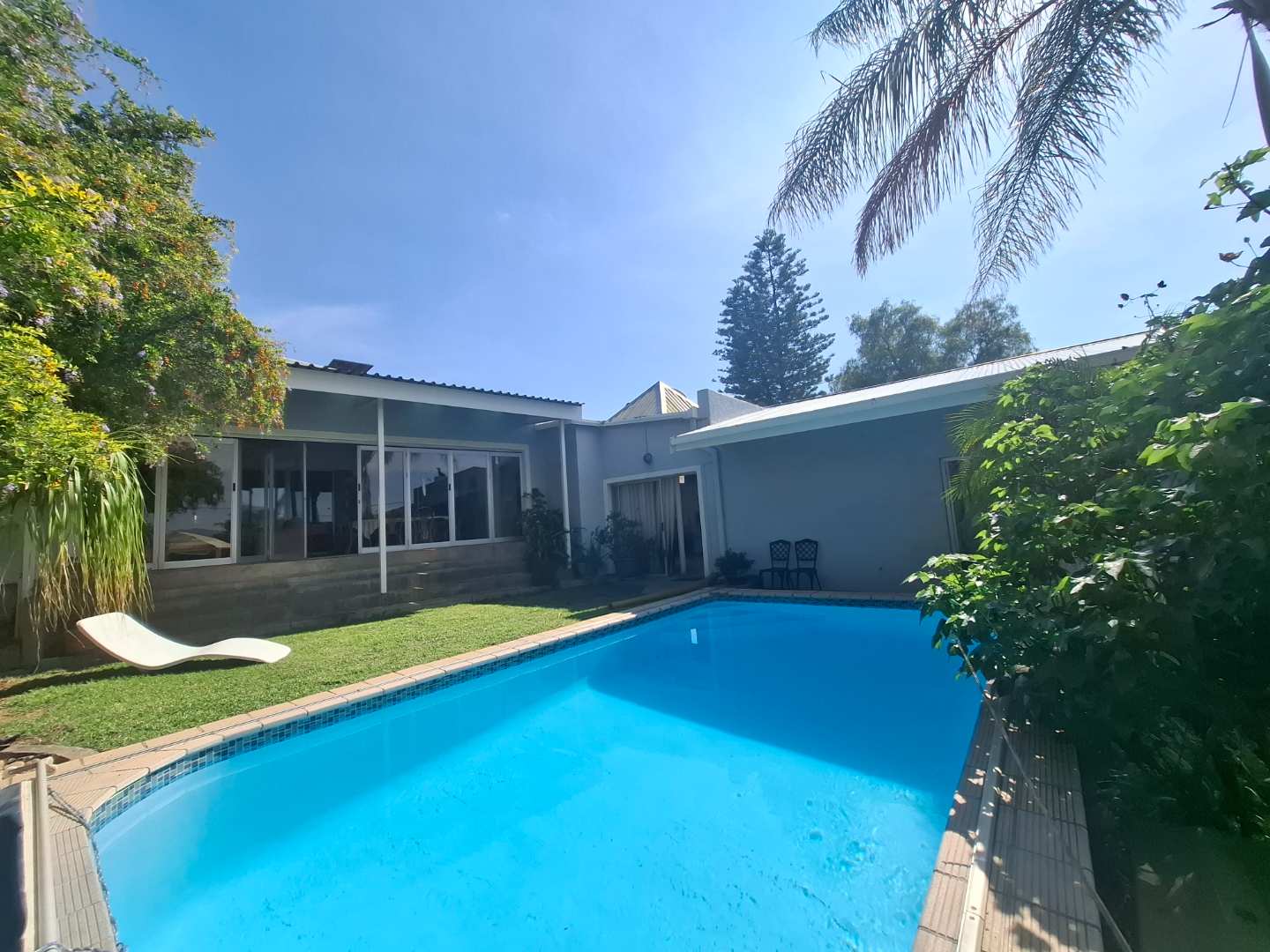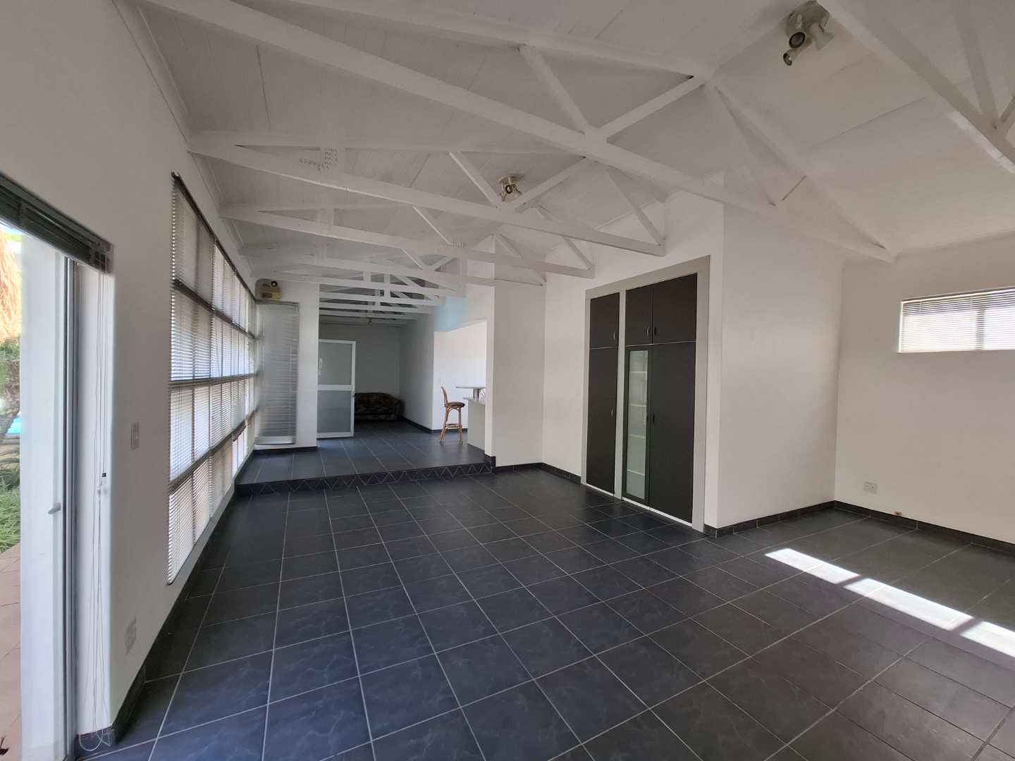 For those who love to entertain, this home has a separate BBQ room complete with a built-in bar, perfect for hosting friends and family. The sparkling pool is beautifully maintained and offers a perfect spot to unwind during the warmer months. While the kitchen is older, it is well-maintained with plenty of cupboard space, and there’s also a separate laundry room and a spacious pantry for added convenience. A standout feature of the property is the large 98sqm bachelor flat, which is modern and stylish, with exposed roof trusses and an open flow to the garden and pool area. This versatile space is ideal for older parents, teenagers, or as a home office. There is ample off-street parking, with three carports and a double garage, ensuring plenty of space for vehicles. The garden boasts several fruit trees, providing fresh produce right from your own backyard. The home is also equipped with a solar geyser, helping to reduce energy costs. Viewings are available by appointment on weekdays between 09:30 and 16:30. Clients with pre-approved financing are welcome to schedule a viewing.