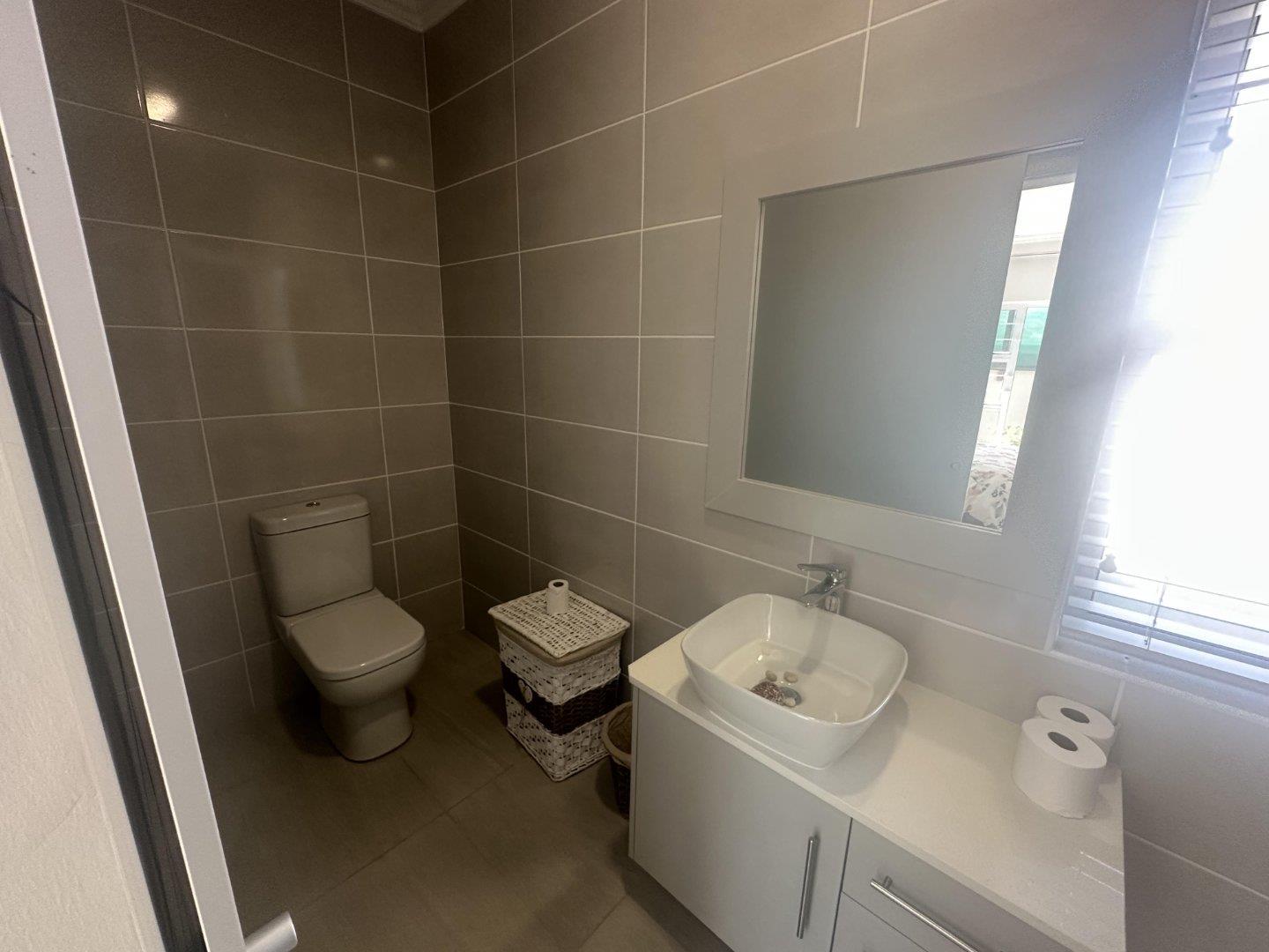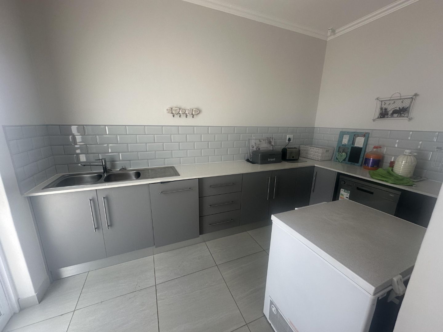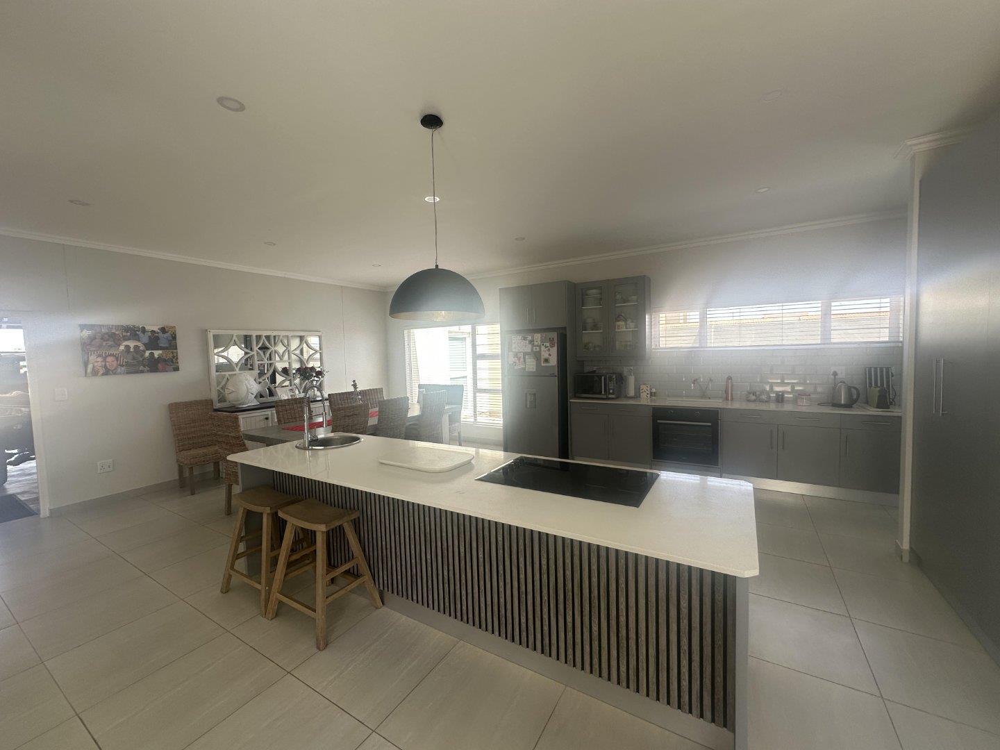 Step inside to find a warm and inviting open-plan living area, where natural light floods through large windows, creating a bright and airy space. The thoughtfully designed layout seamlessly connects the kitchen, lounge, bar, and TV area, making it ideal for both daily living and entertaining guests. The contemporary kitchen, complete with a scullery, provides ample space for cooking and cleaning with ease.
