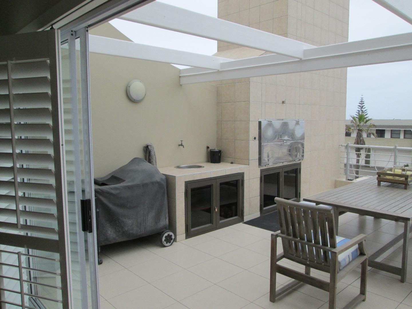 Step outside onto the balcony, where you'll find an impressive outdoor braai area complete with a wash basin. This entertainment space is ideal for alfresco dining and enjoying the serene sea views.
