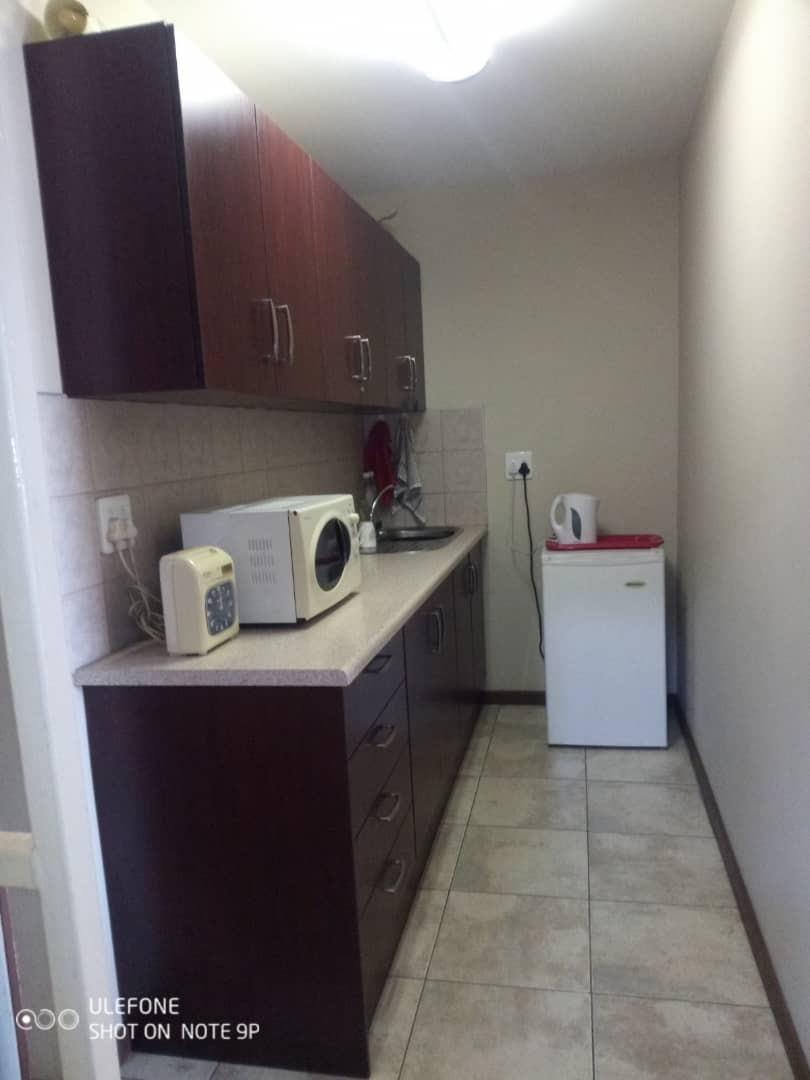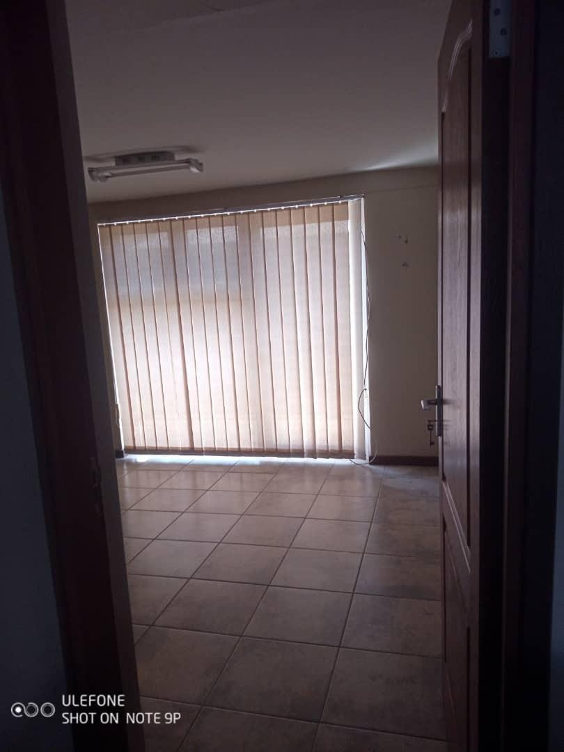 The property caters to administrative needs with dedicated office spaces that feature easy-to-maintain tiled flooring and natural light streaming through windows fitted with vertical blinds. It includes a compact yet highly functional kitchenette, complete with modern dark wood-look cabinetry, a countertop, tiled backsplash, and essential appliances. Two well-appointed bathrooms serve the facility, enhancing convenience and comfort.