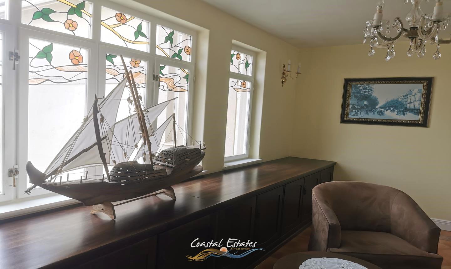 The fabrics and furnishings have been thoughtfully selected to complement the building's historic character. The listed facade blends seamlessly with the main building's stucco ceilings and a modern ambiance, creating an extraordinary atmosphere. The tasteful color palette allows the playful Art Nouveau elements to shine within this 100-year-old treasure, making Hotel Eberwein a unique jewel in this historic coastal city.