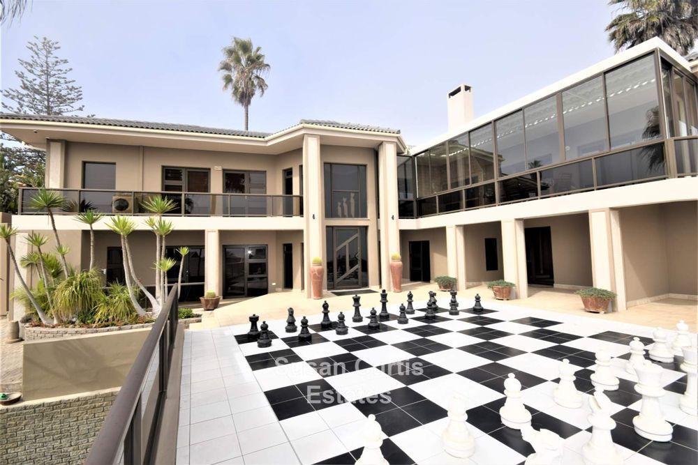 Main entrance, pedestrian gate and garage at street level resulting in sea views from all west facing areas.