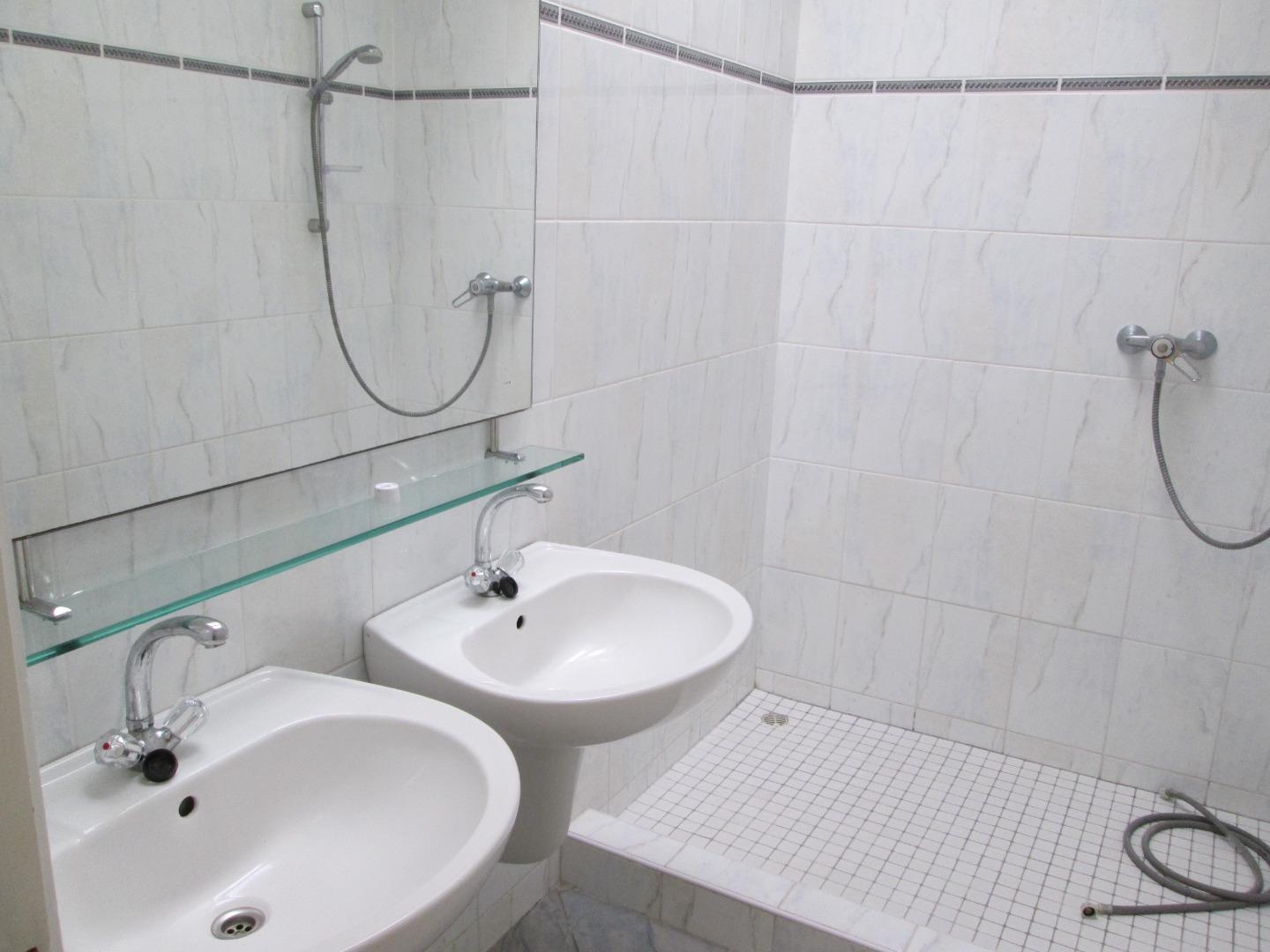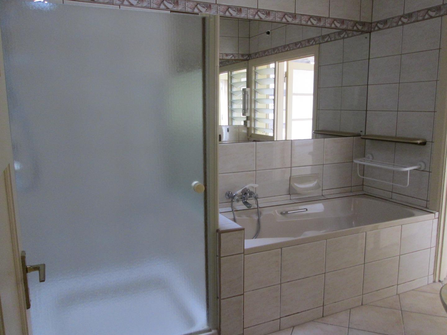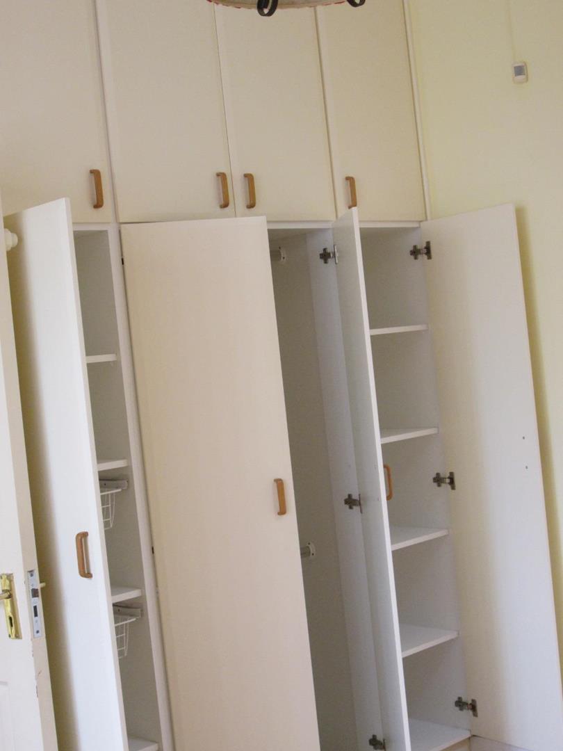 On the top floor, you will find a bedroom complete with air conditioning and an adjoining storage room, making it an ideal private sanctuary. The well-appointed kitchen is complemented by a scullery and a laundry room, ensuring ample space for all your culinary and household needs. The entrance hall, featuring two doors that open to the outside on opposite sides of the house, creates a welcoming and airy ambiance.