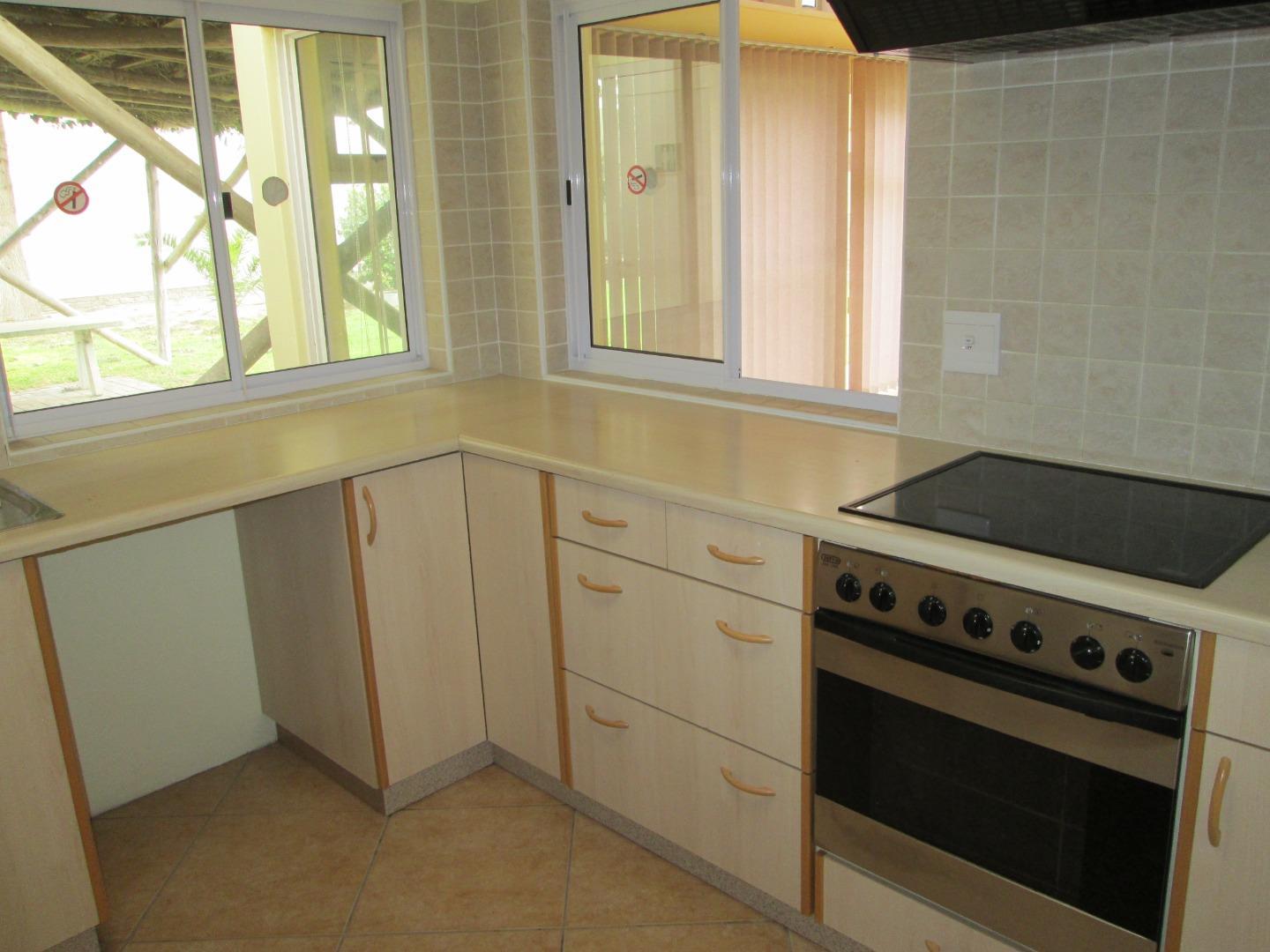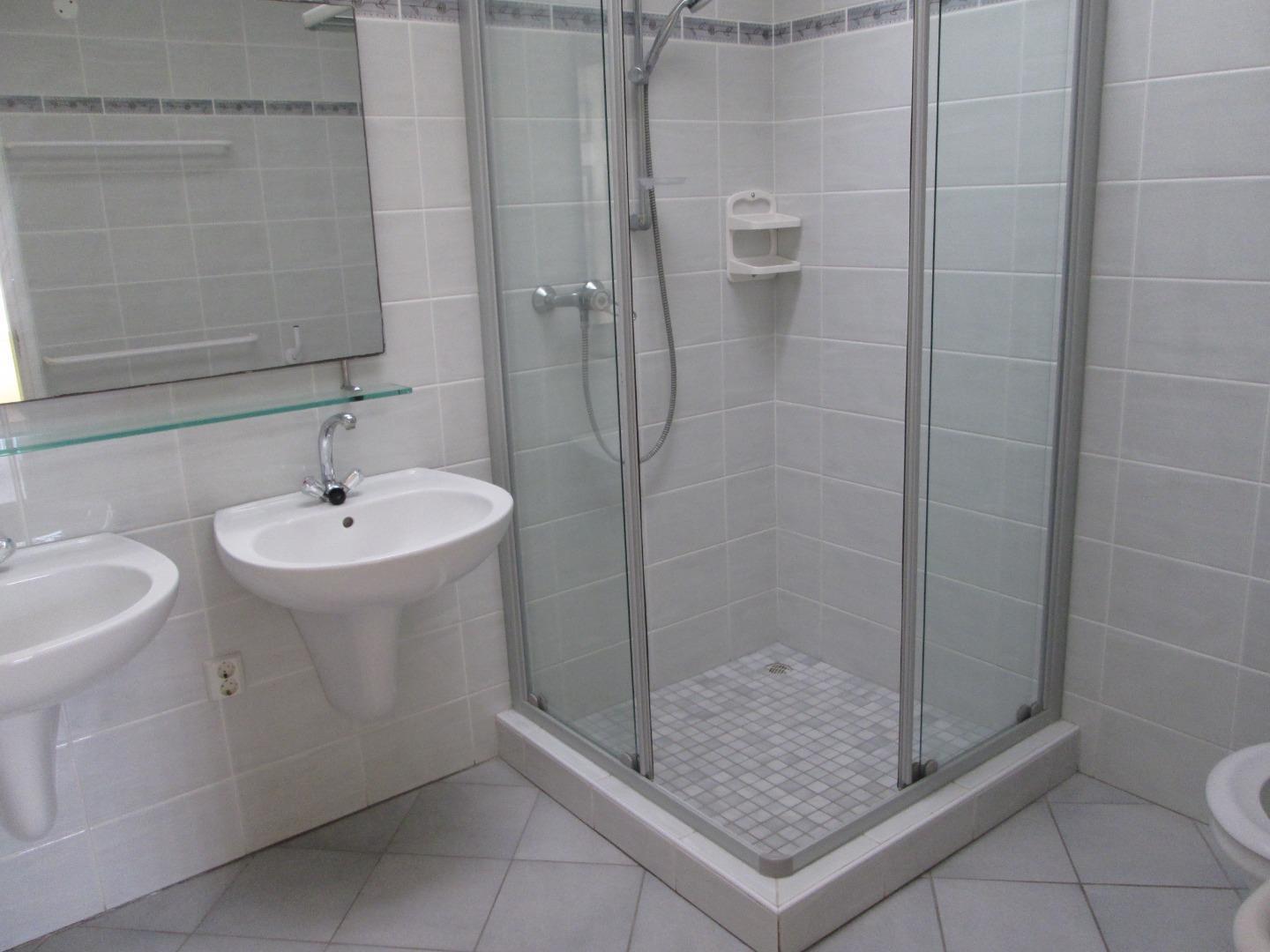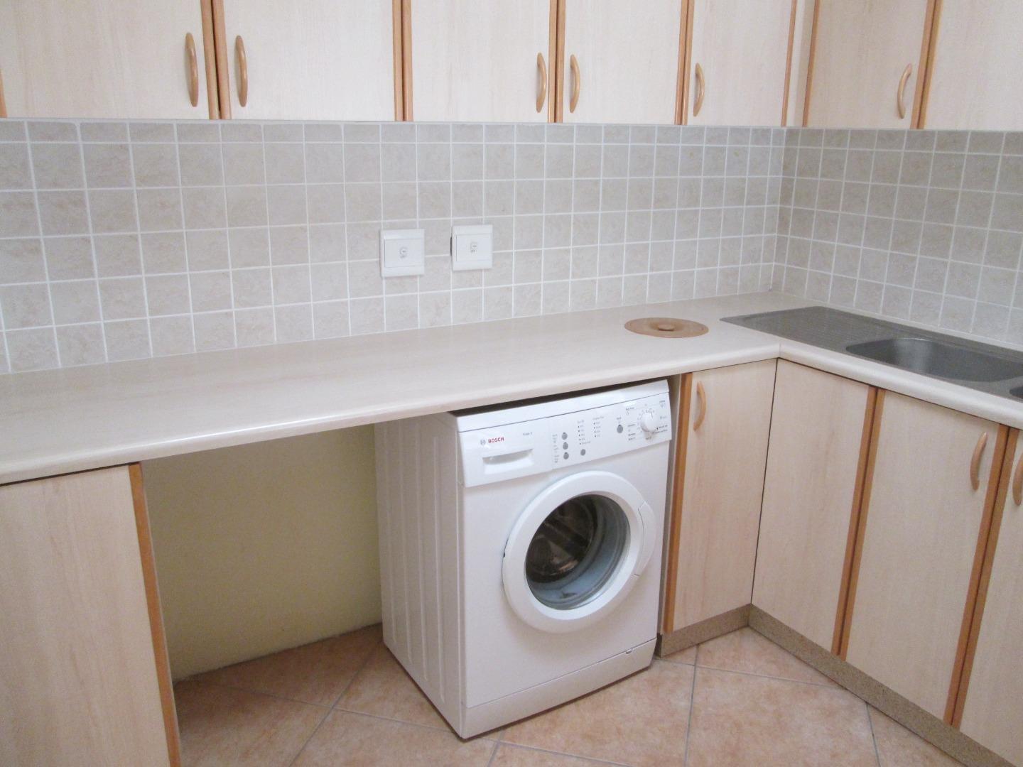 On the top floor, you will find a bedroom complete with air conditioning and an adjoining storage room, making it an ideal private sanctuary. The well-appointed kitchen is complemented by a scullery and a laundry room, ensuring ample space for all your culinary and household needs. The entrance hall, featuring two doors that open to the outside on opposite sides of the house, creates a welcoming and airy ambiance.