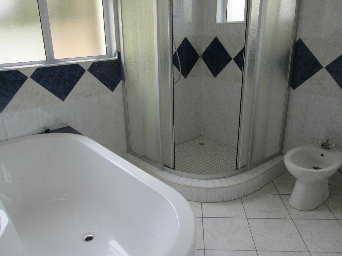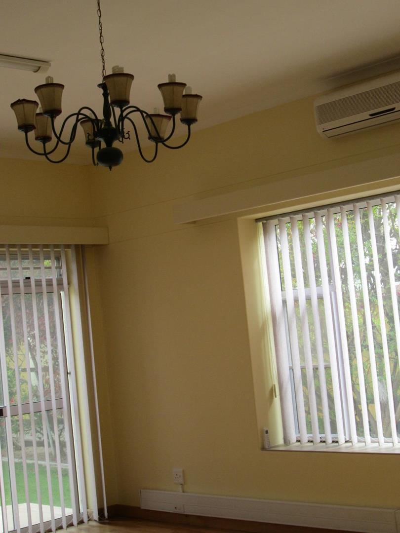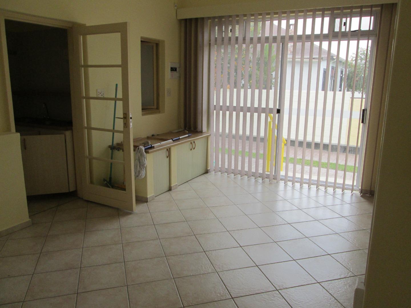 The spacious lounge area opens up to a beautifully tiled patio through sliding doors, perfect for indoor-outdoor living. Adjacent to the lounge is a versatile dining area that can also serve as a study or an additional lounge. The property includes two garages with enough space to house up to four cars, along with an impressive 17 additional parking spaces.