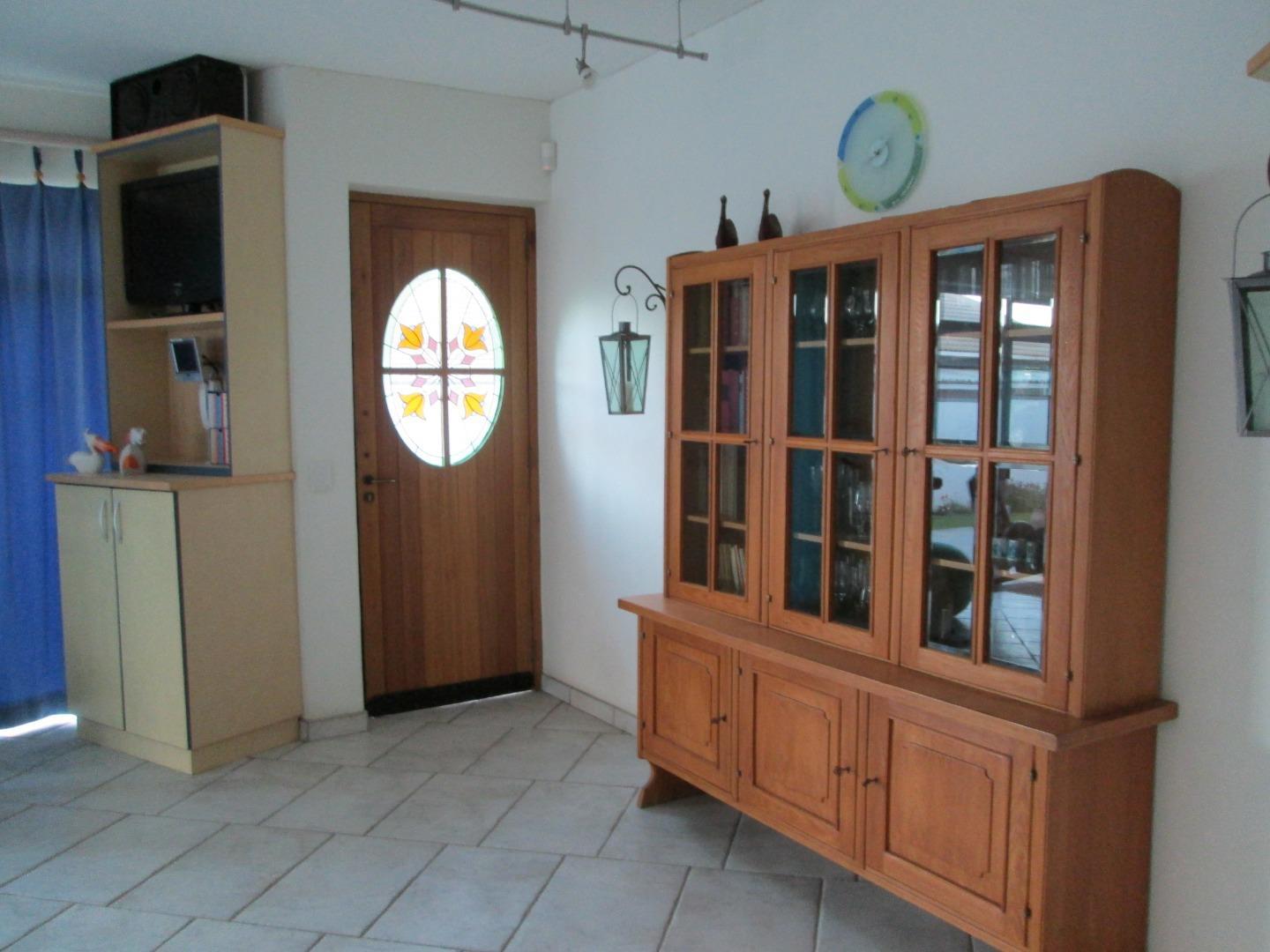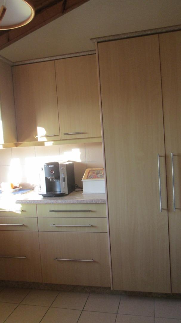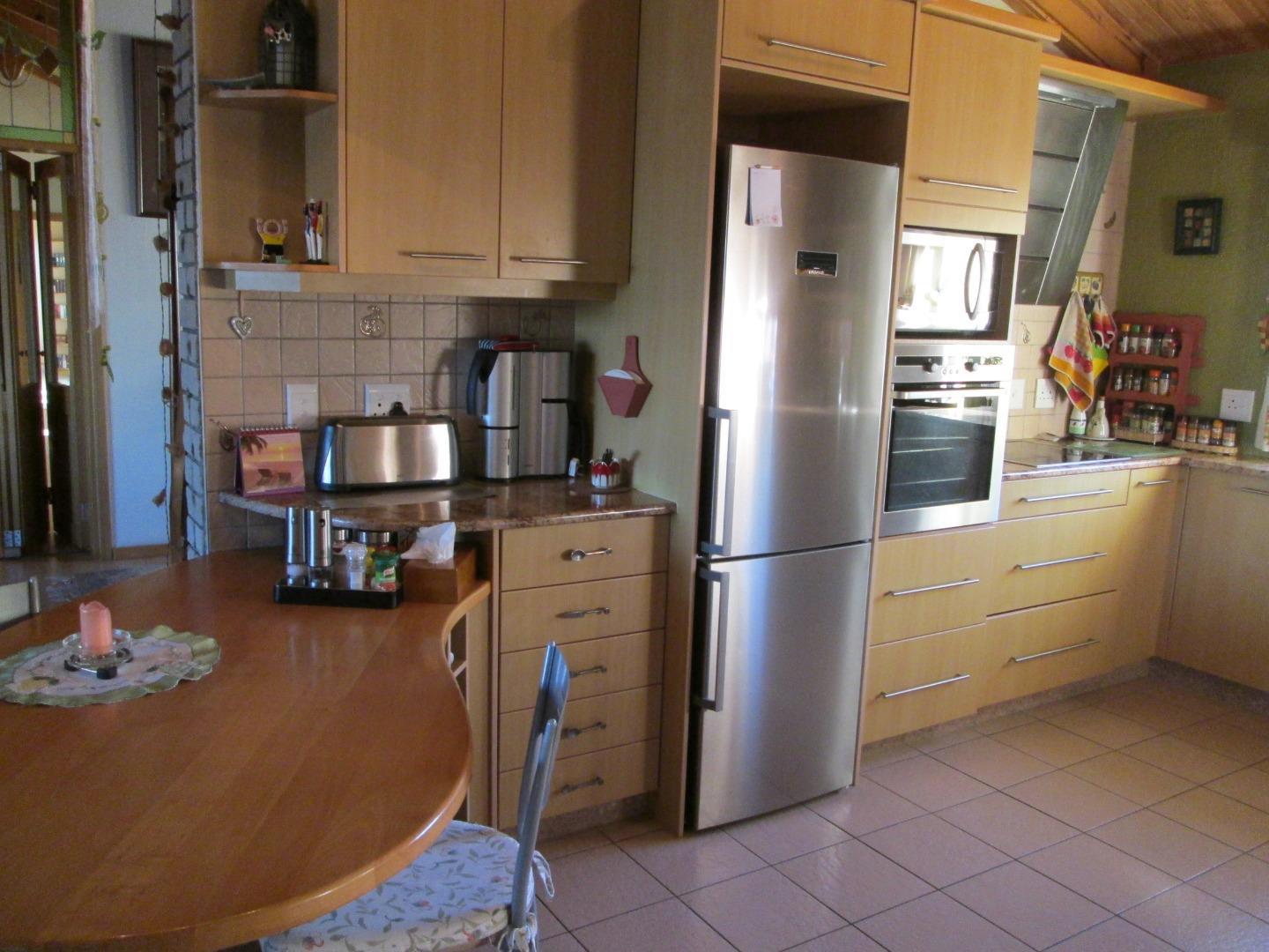 Welcome to this exquisite, solidly built, face brick double-storey home, where daylight streams through ample windows, including stunning flint-glass windows and doors. Masterfully crafted wooden cupboards, each a unique piece of art, add a touch of elegance throughout the house.