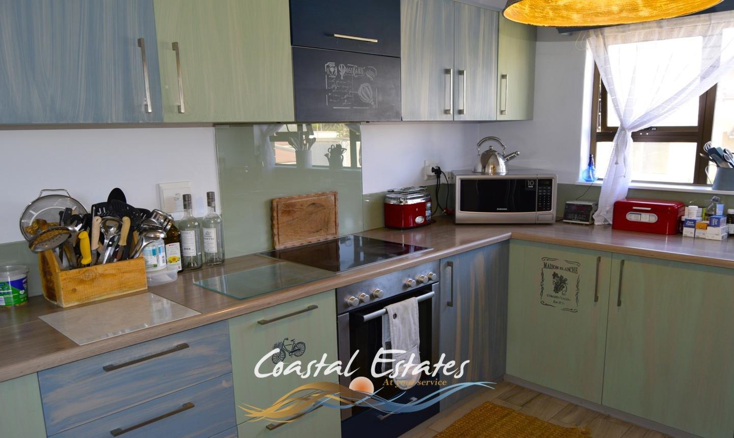 Outside, a vast yard encourages you to bask in the sun or engage in outdoor pursuits, while security cameras provide peace of mind. Additionally, with fiber internet already installed and a Semi-Purified water connection available for the garden, modern conveniences blend effortlessly with coastal living.