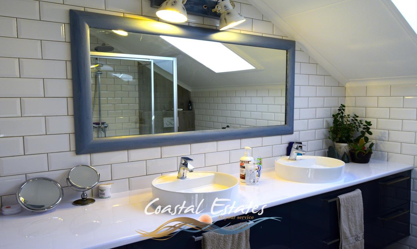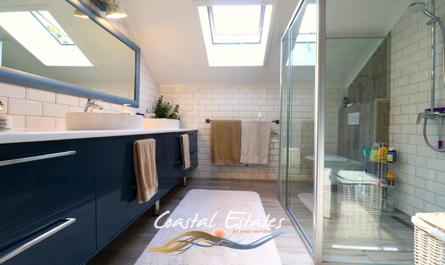 The ground level features practicality and convenience with a fully equipped laundry room, a designated office area, and a large double garage offering plenty of space for your beach equipment and vehicles.
