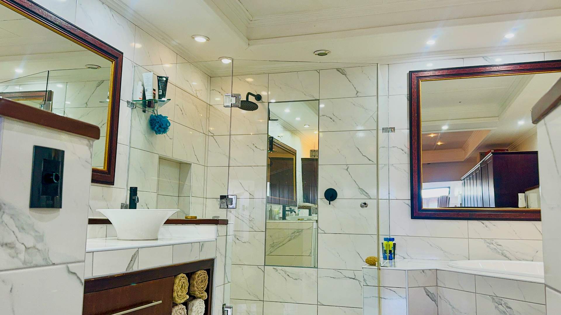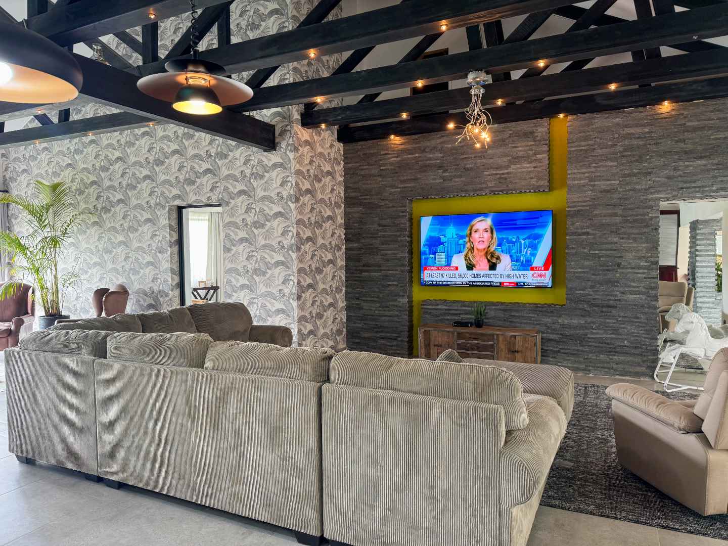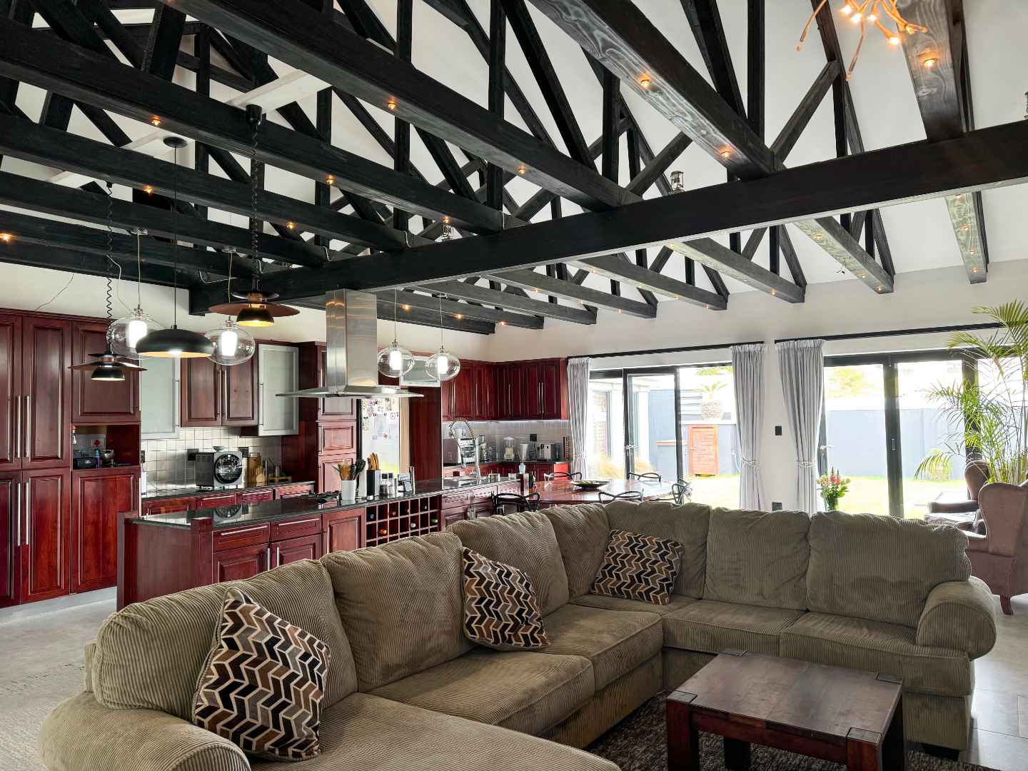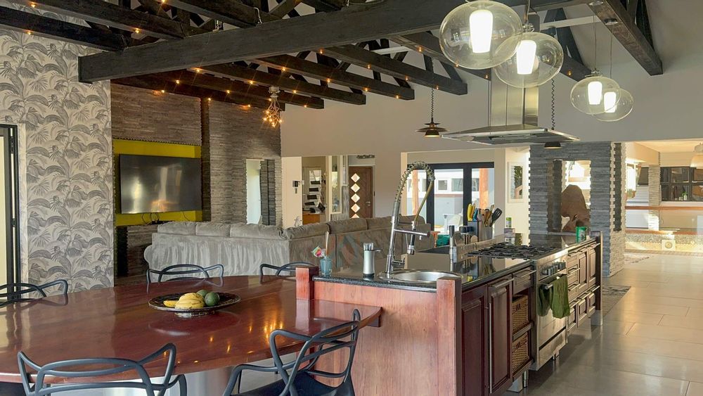 - Exquisite Rhodesian Teak Kitchen: The heart of the home features a stunning, well-appointed kitchen made of Rhodesian teak. It’s open-plan, seamlessly flowing into the living area, making it perfect for entertaining and family gatherings.