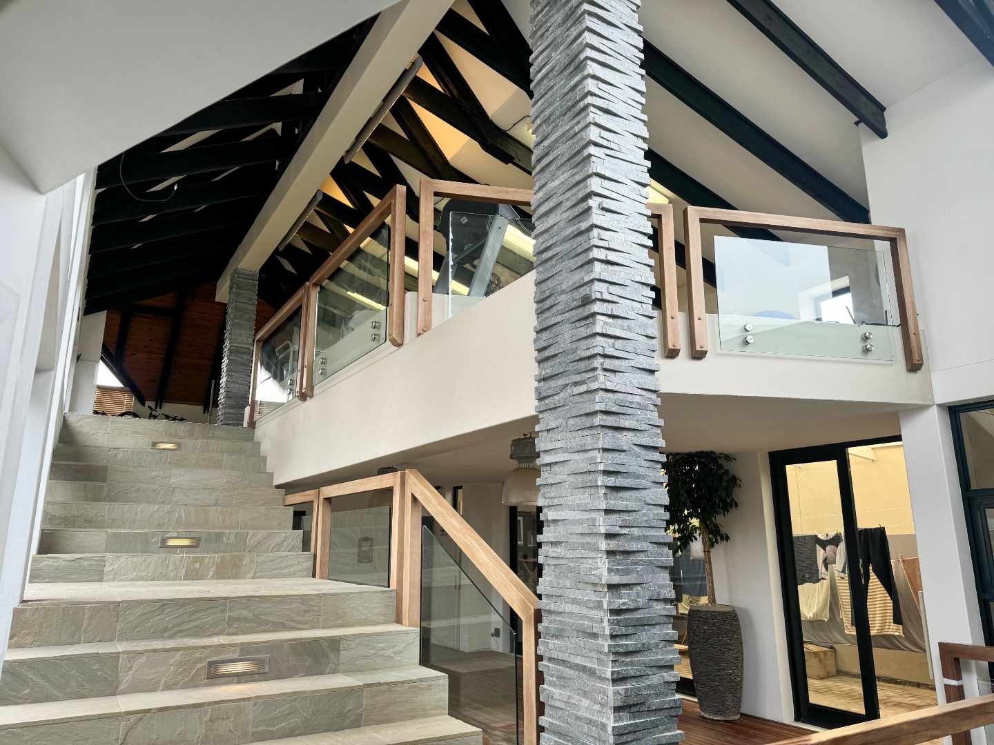 - Expansive Upstairs Living Area: The upper floor boasts another large living area adjacent to a grand balcony with breathtaking views over the town, making it an ideal spot for relaxation or entertaining guests