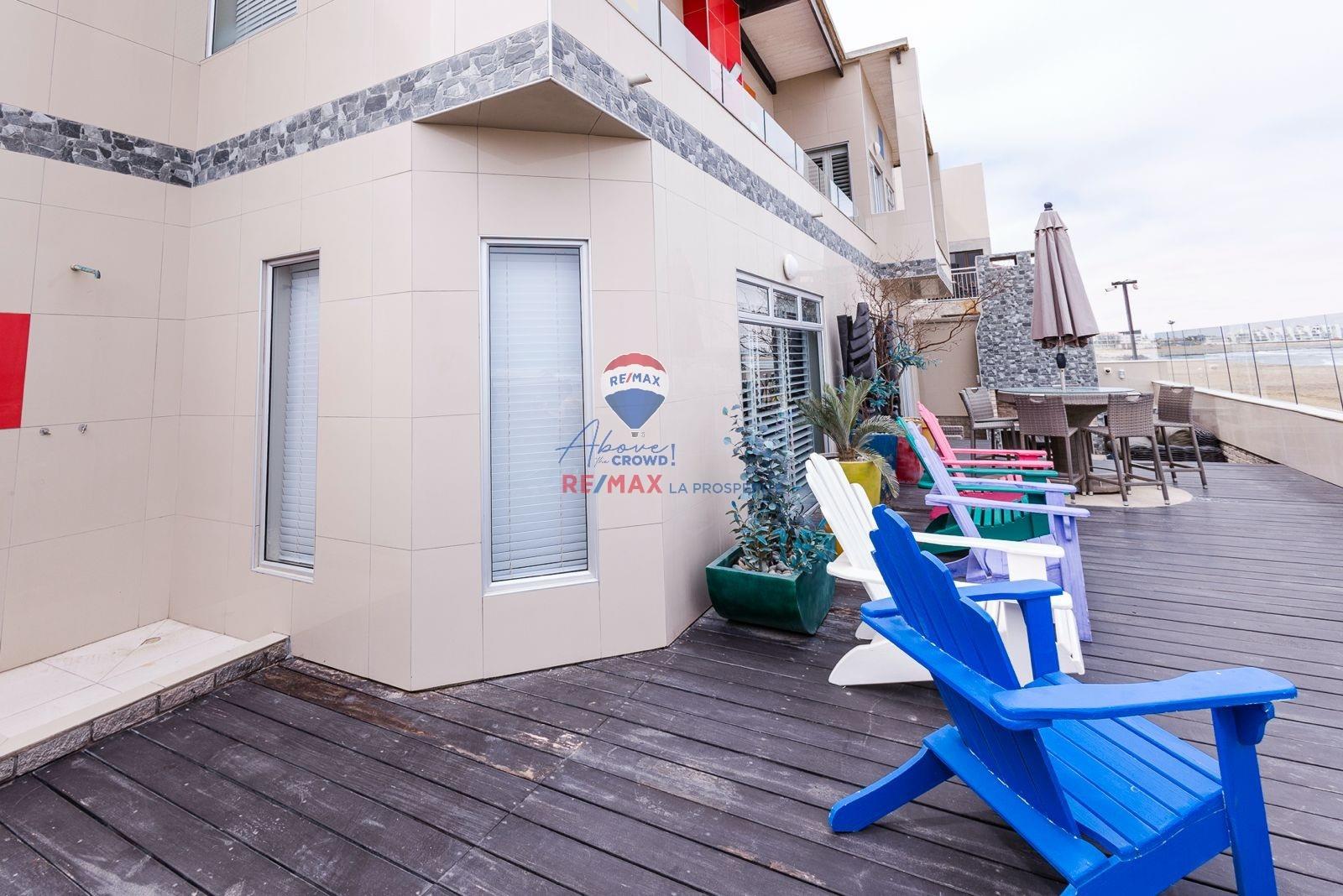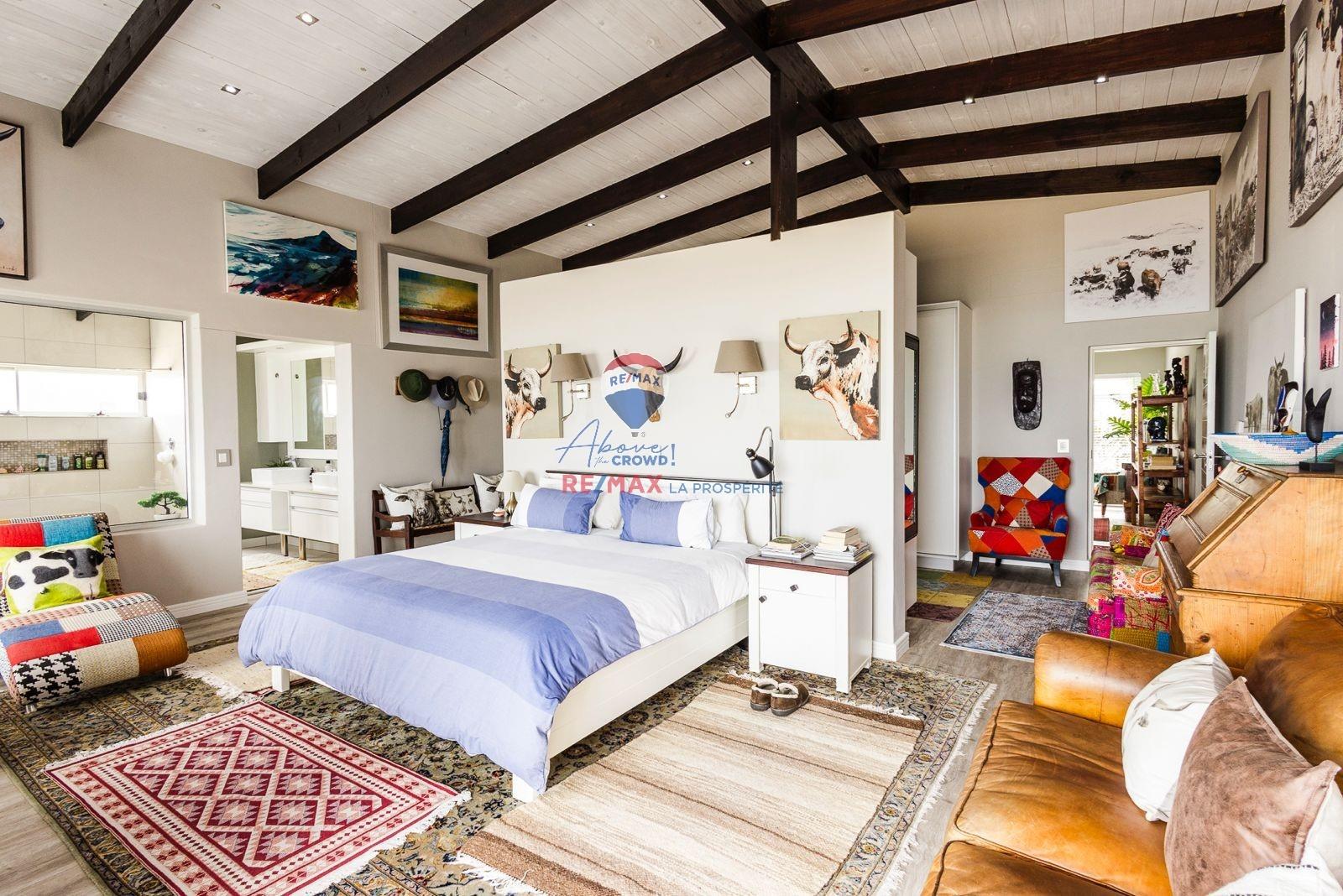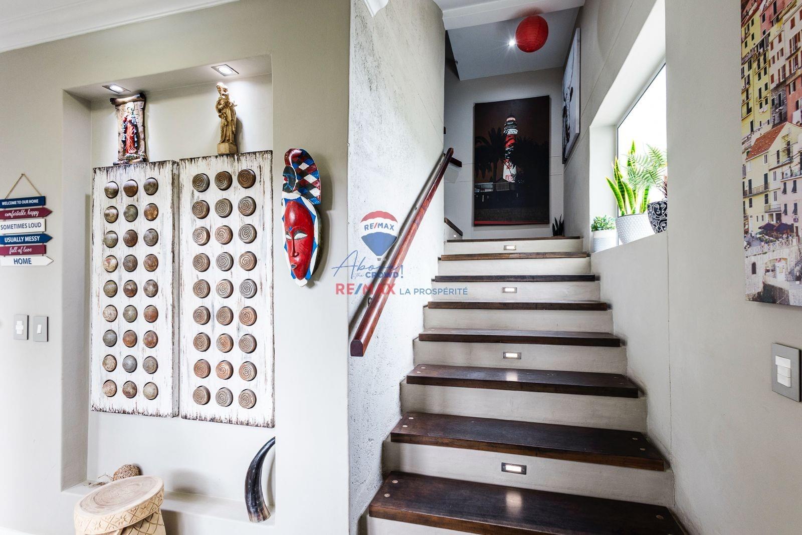 Discover this exceptional residential property located in the sought-after coastal area of Mile 4, Swakopmund, Namibia. Boasting a modern architectural style with a bright facade and lush tropical landscaping, the property presents an inviting kerb appeal, complemented by a distinctive carved wooden entrance and a large paved driveway leading to five spacious garages. Security cameras are visible, enhancing peace of mind.
