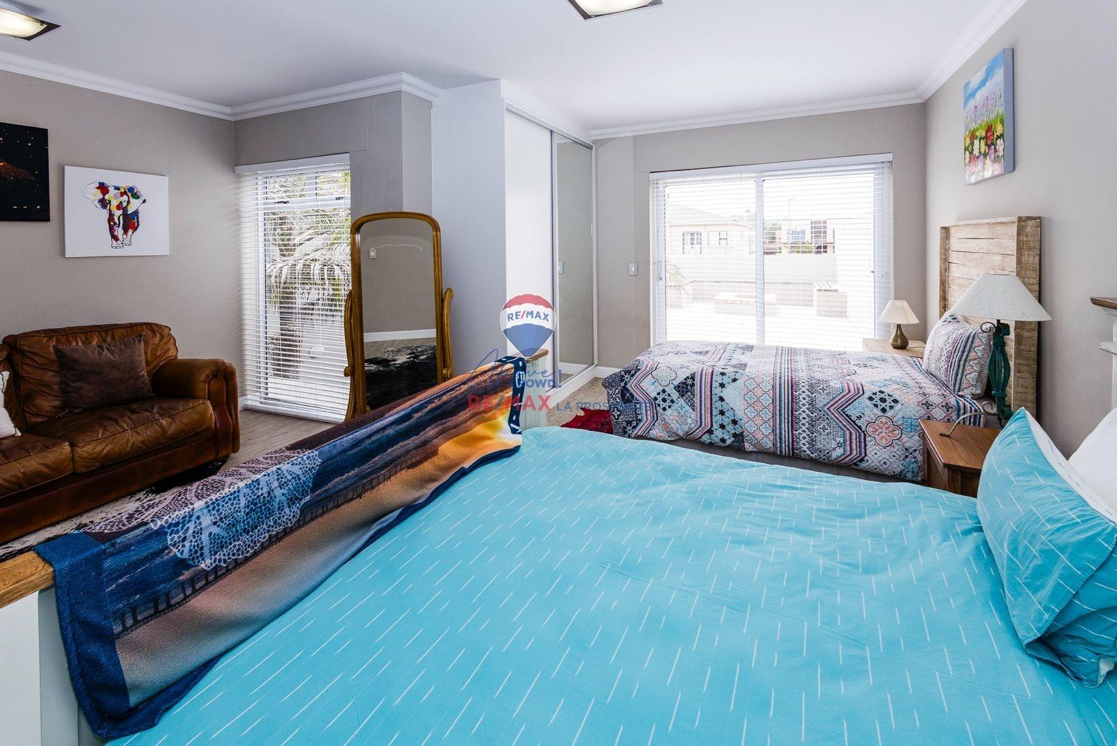 Outdoor living is equally impressive, with a well-maintained garden and paved areas. Enjoy the coastal breeze from the balcony or host gatherings in the dedicated braai room, complete with a built-in braai. The property is totally walled and equipped with an alarm system, offering enhanced security. Its prime waterfront and coastal location provides scenic views and easy access to beach activities.