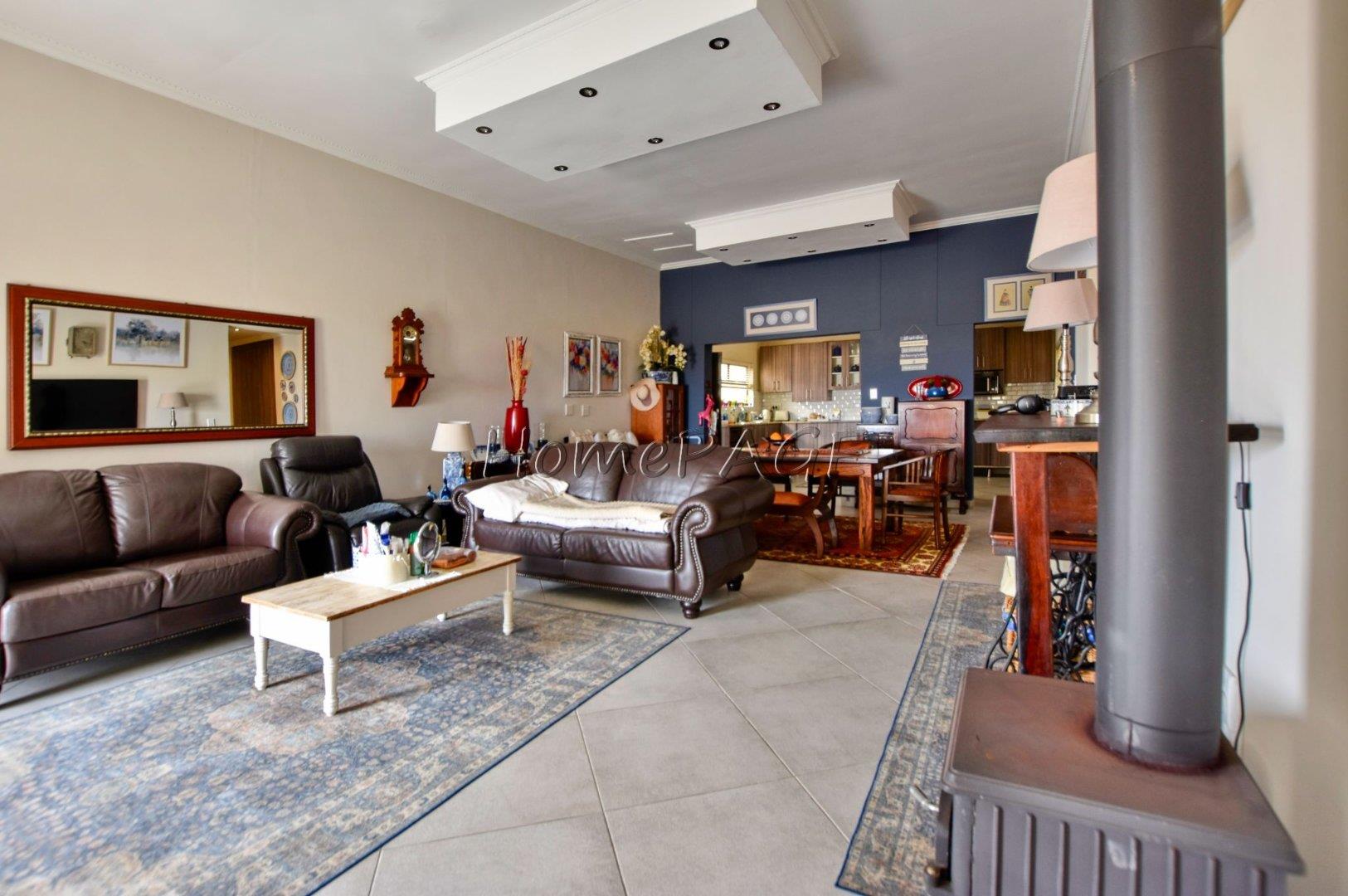 * Living area, that caters for lounge/dining room, with wood fireplace
