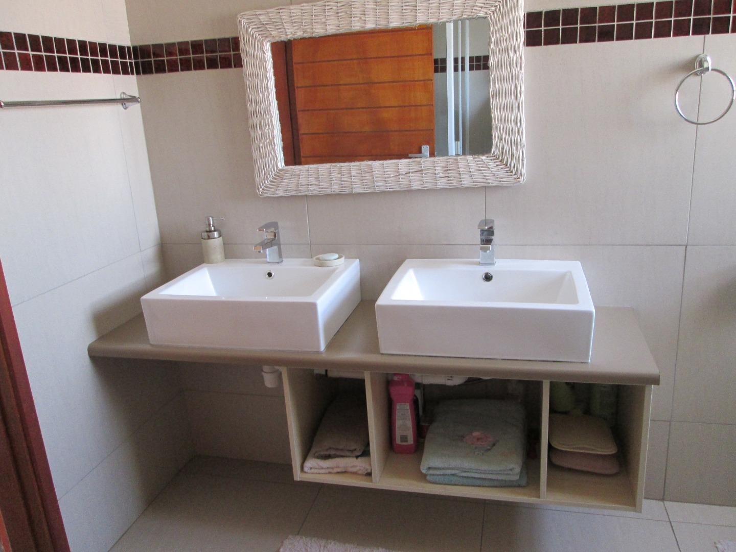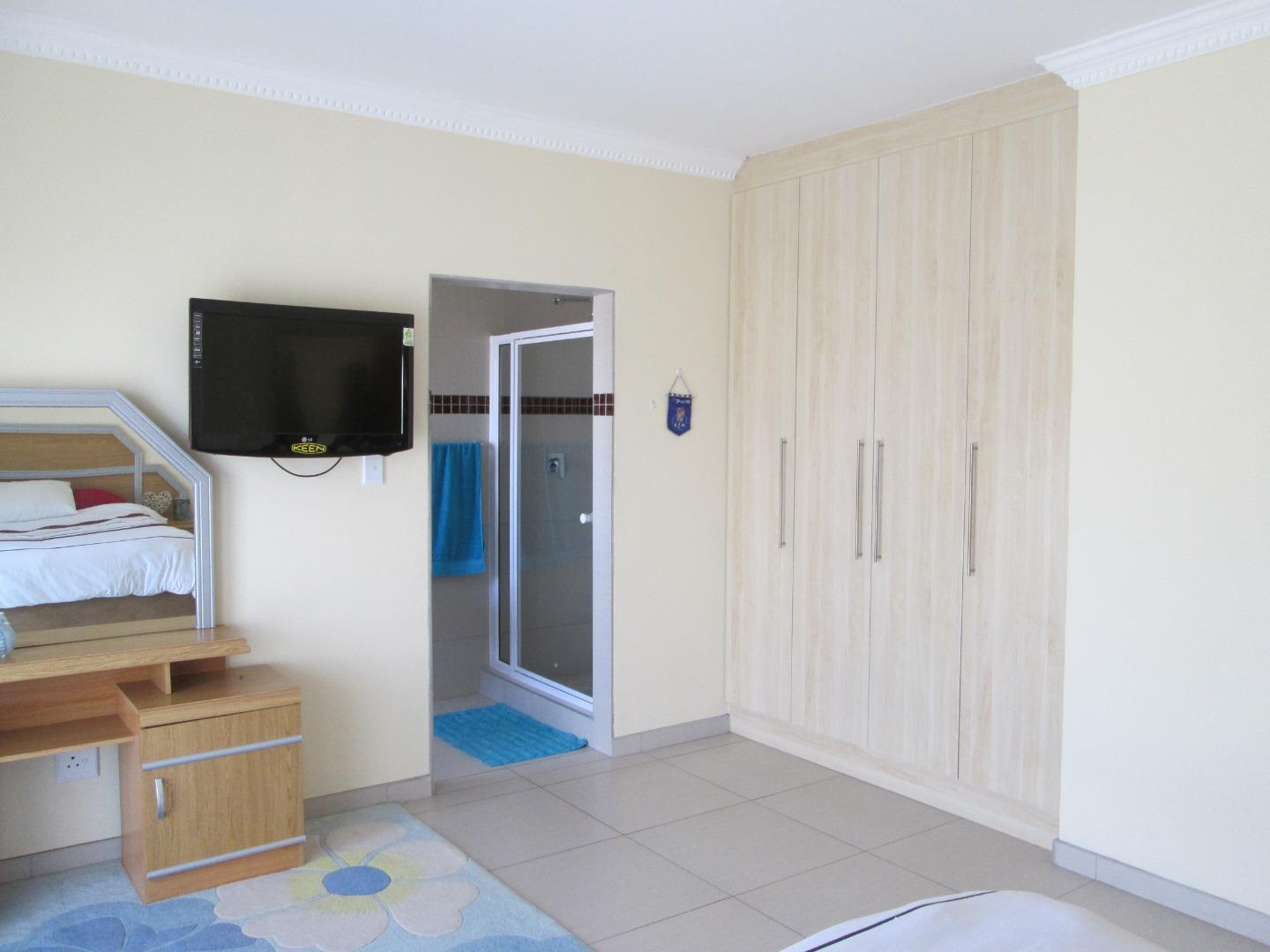 As you step inside, you are greeted by an inviting entrance hall with ample storage space under the stairs, ideal for all your organizational needs. The spacious lounge provides a cozy spot for relaxation, while the adjoining dining room features an indoor braai, perfect for entertaining. The fully fitted kitchen boasts modern appliances and plenty of counter space, seamlessly connected to a laundry and scullery area for added functionality.
