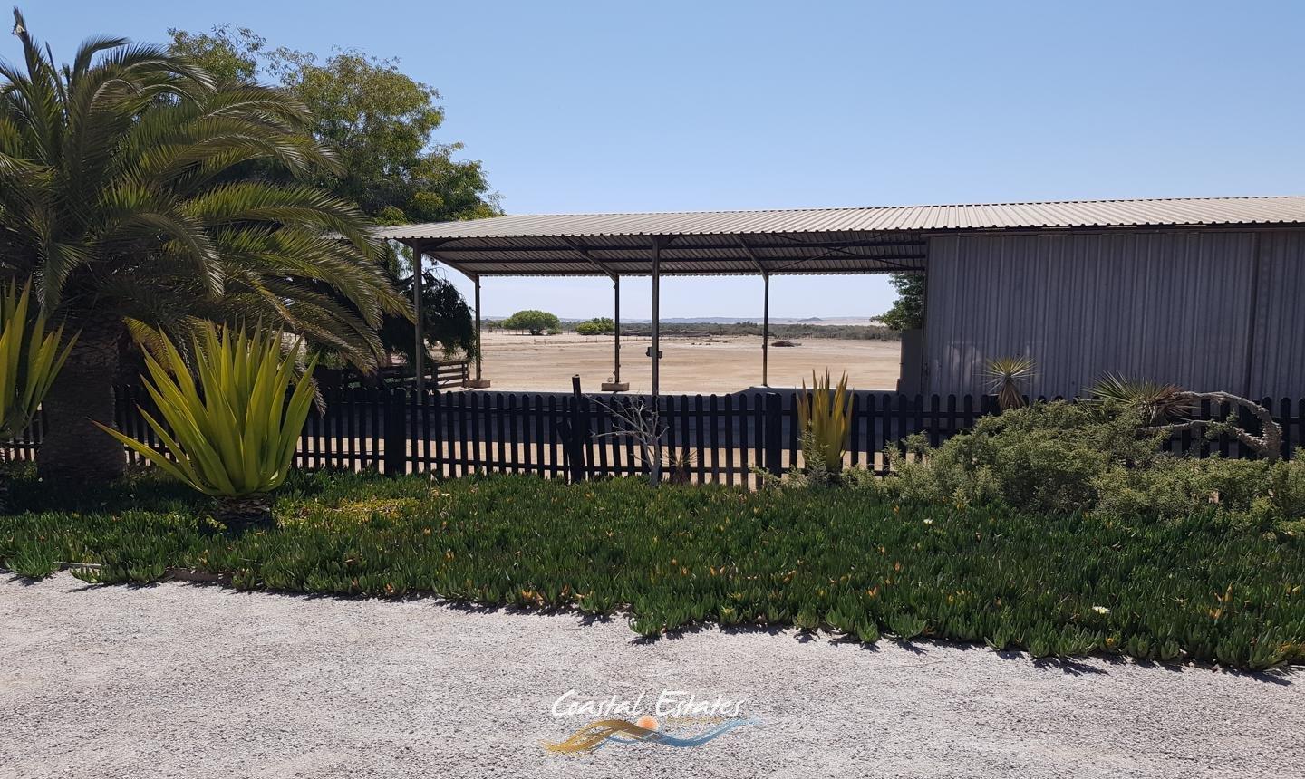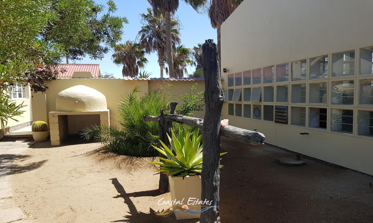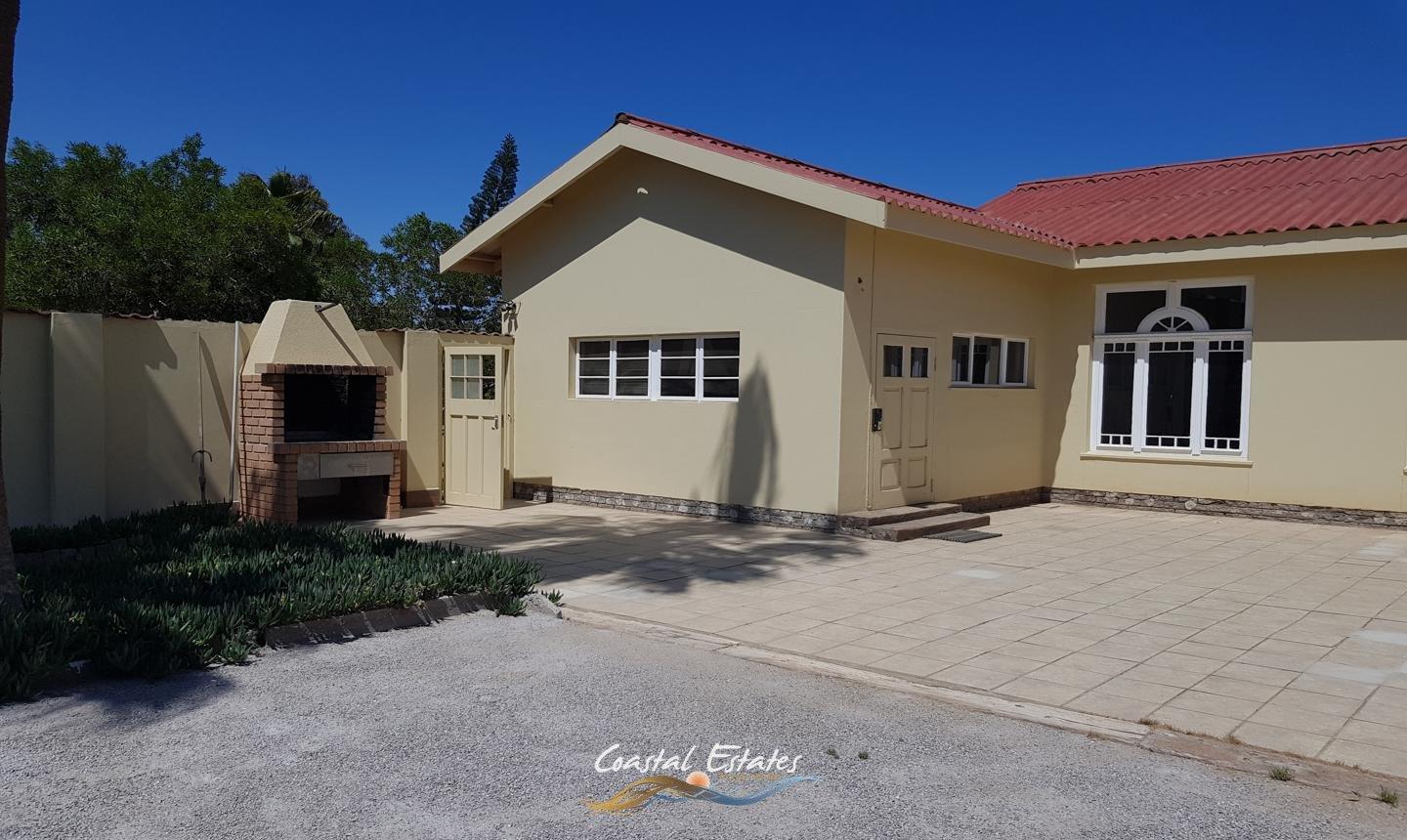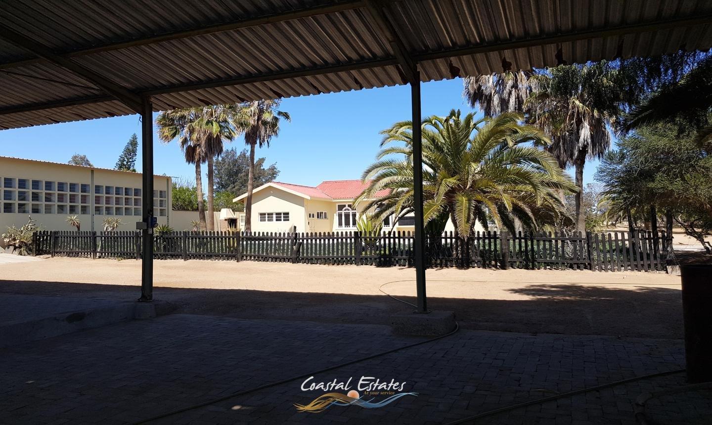 The property is equipped with essential utilities, including Nampower electricity and municipal water, complemented by a well providing brackish water for gardening purposes. The entire plot is securely fenced and features two separate entrance gates for easy access—one leading to the main residence and the other to the outbuildings.