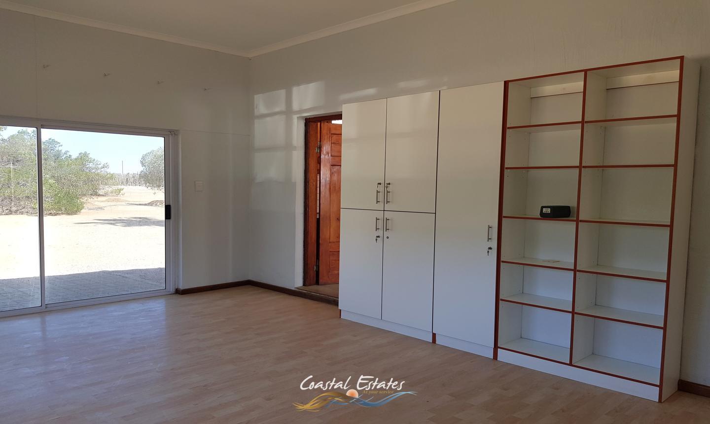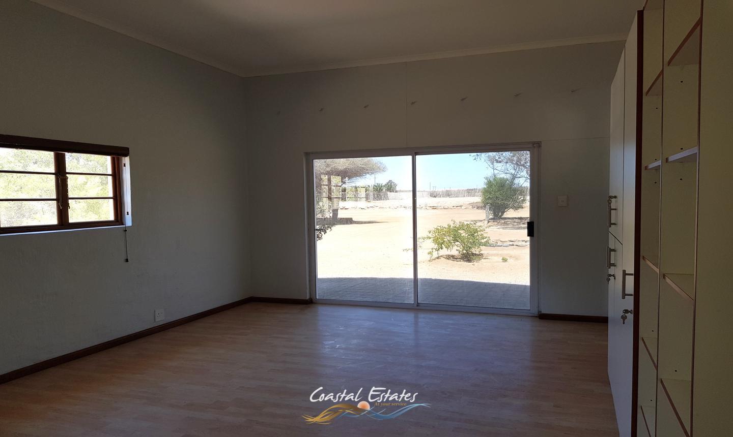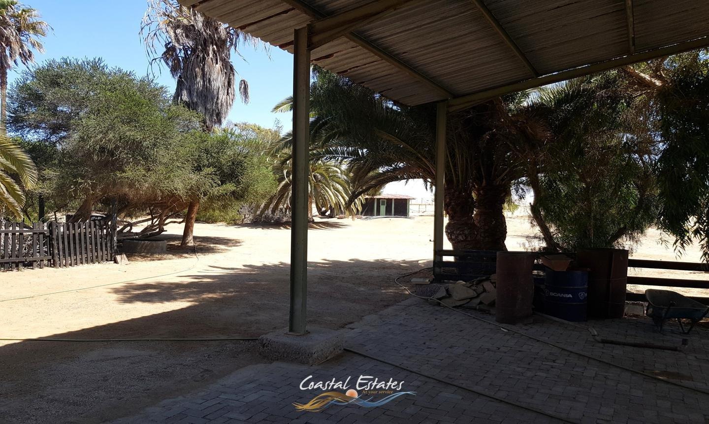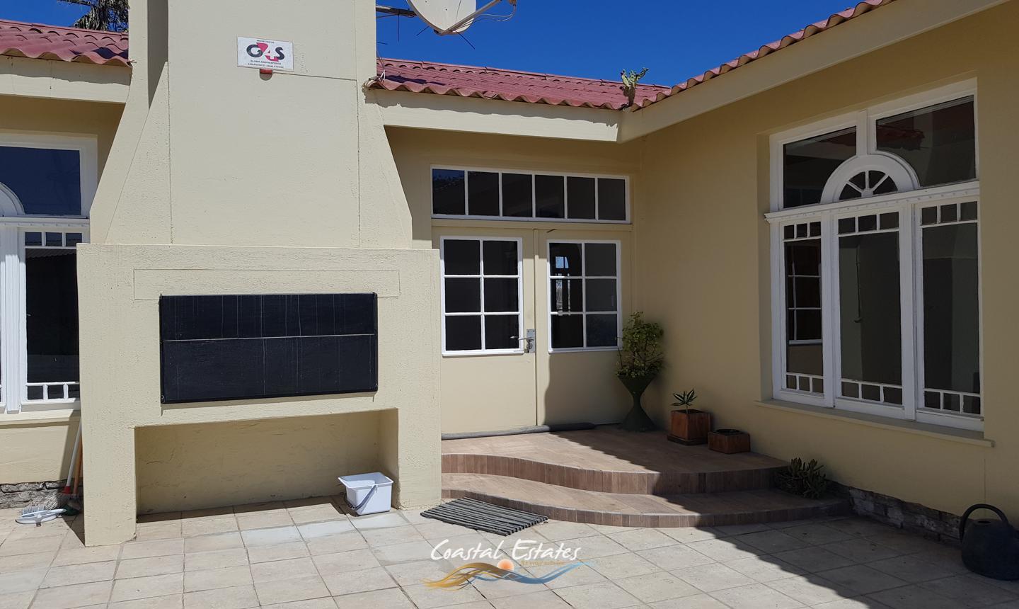 The property is equipped with essential utilities, including Nampower electricity and municipal water, complemented by a well providing brackish water for gardening purposes. The entire plot is securely fenced and features two separate entrance gates for easy access—one leading to the main residence and the other to the outbuildings.