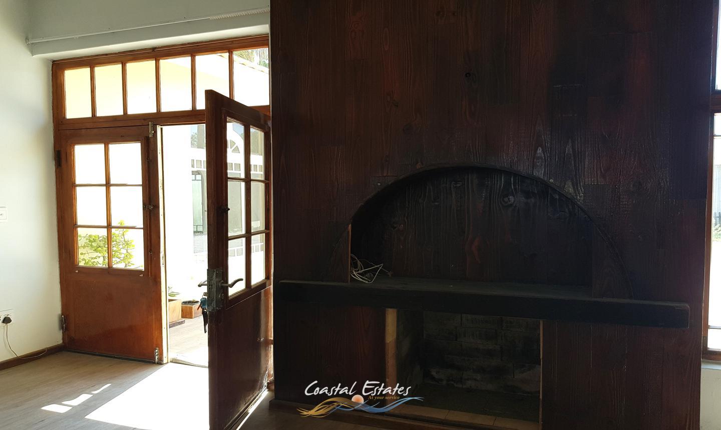 A welcoming large living area with a cozy fireplace, seamlessly connected to an open-plan kitchen with stylish wood finish cupboards