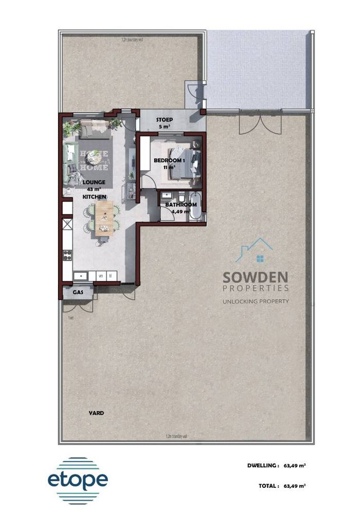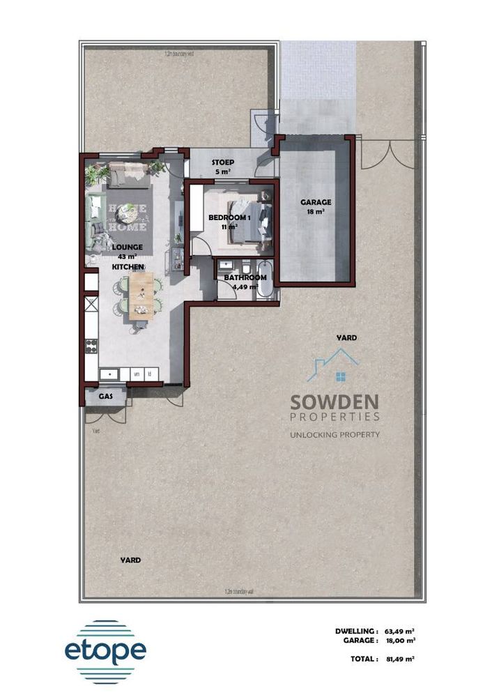 The dwellings at Etope boast thoughtfully designed floor plans, with options to suit different preferences. The 63.49m2 dwellings are available with or without a garage. The single garage option adds an additional 18.00m2, resulting in a total of 81.49m2. For those requiring more space, the double garage option provides an expansive 36.00m2, resulting in a total of 99.49m2. The choice is yours.