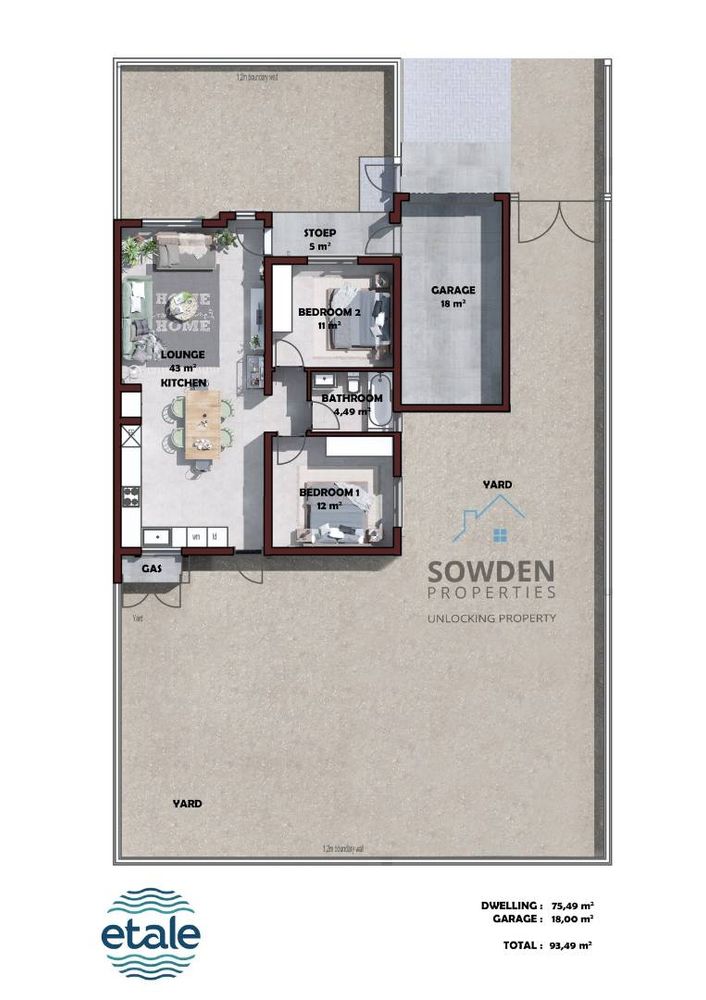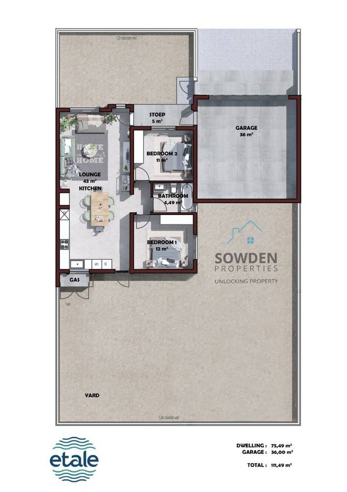 Dwelling 75.49m2 / Garage Double 36.00m2 / Total 111.49m2