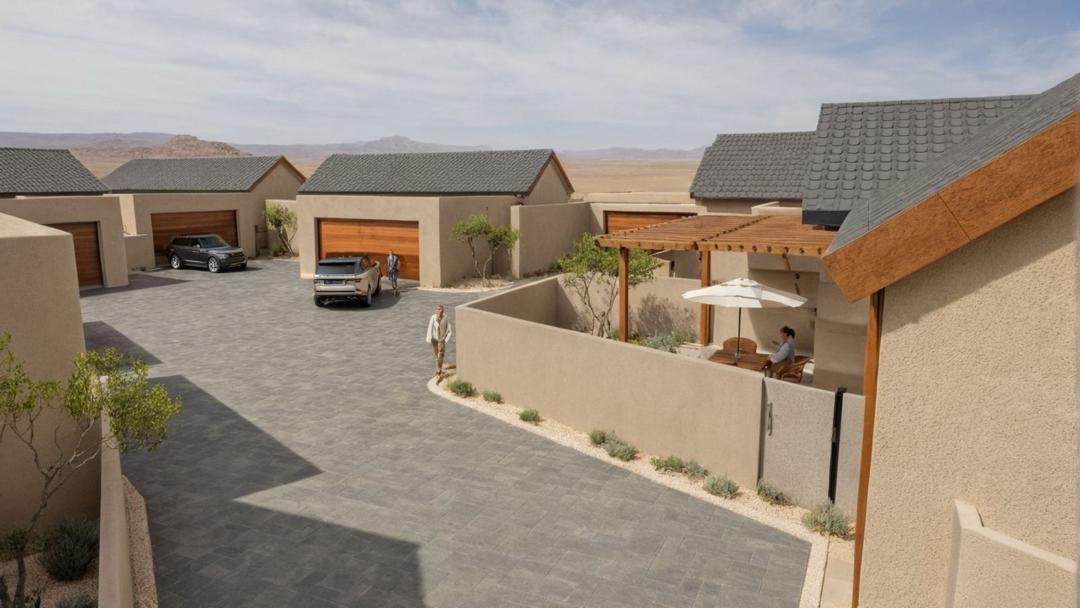 Access the property via neatly paved driveways, ensuring durability and a polished look.