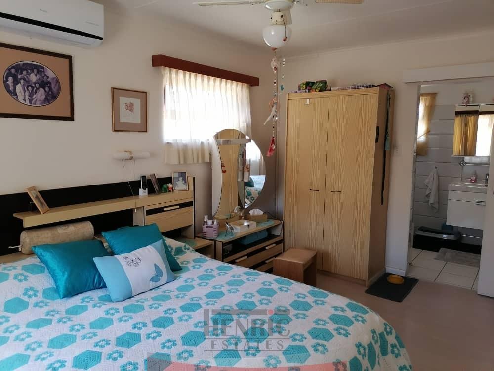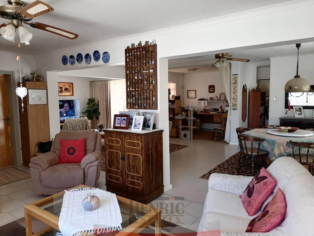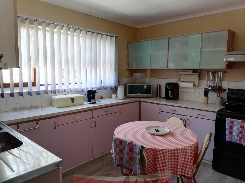 At the heart of the home is a large kitchen featuring a scullery and open-plan living areas. Here, you’ll discover a cozy study nook, a comfortable TV room, and an indoor braai area—perfect for entertaining guests or enjoying family gatherings year-round.