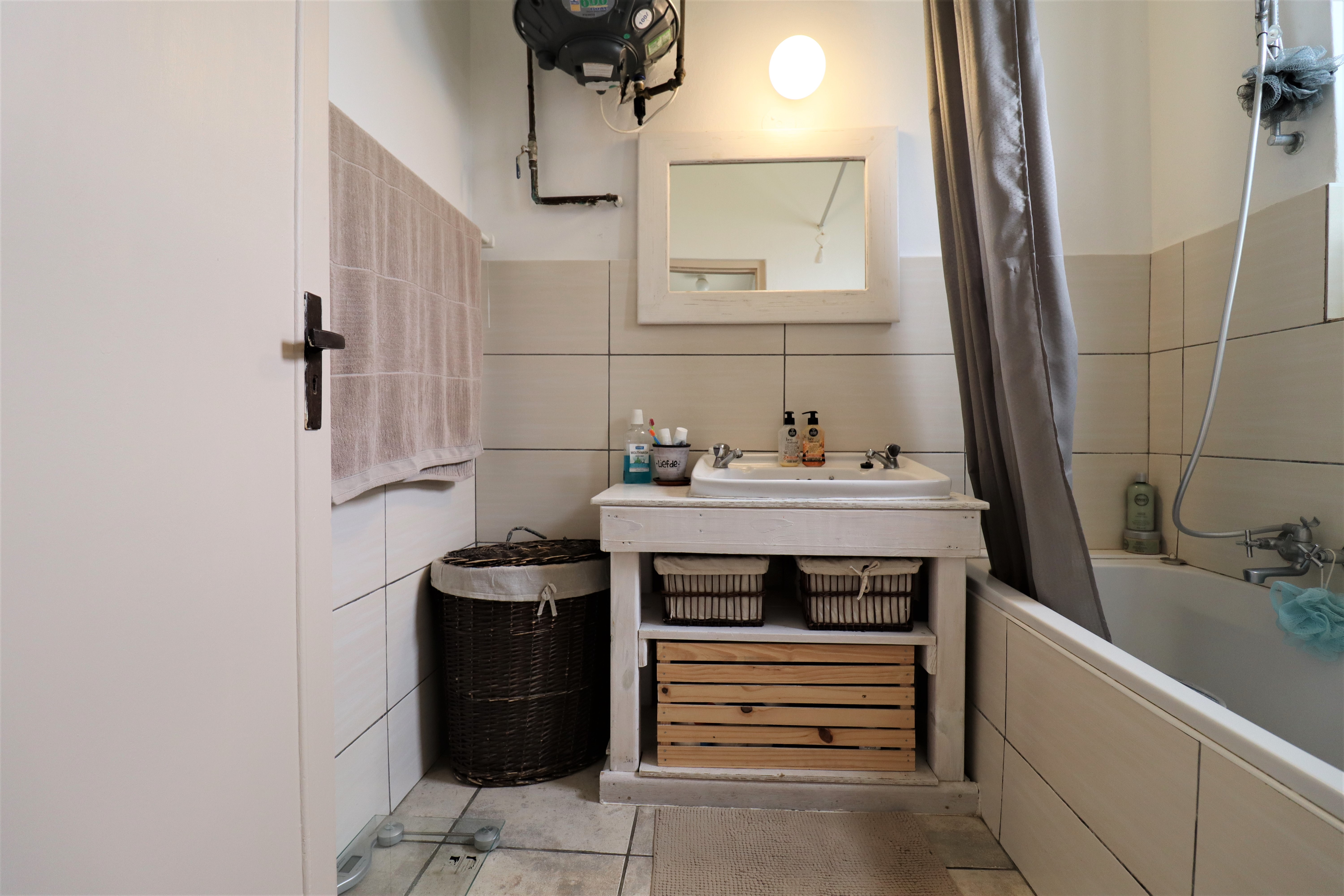 Two garages, the one garage turned into a flatlet but can be used as a second garage again.