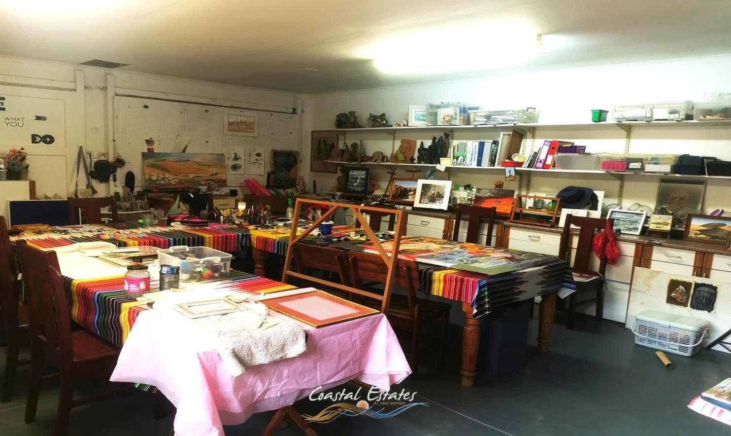As you approach the property via the paved, interlocking driveway, you will be greeted by two double garages that open into a welcoming courtyard with direct access to the front door. One of these garages has been creatively transformed into an art studio, highlighting the adaptable nature of this home. The entire property benefits from a reliable Paratus Fiber connection, ensuring seamless digital access.
