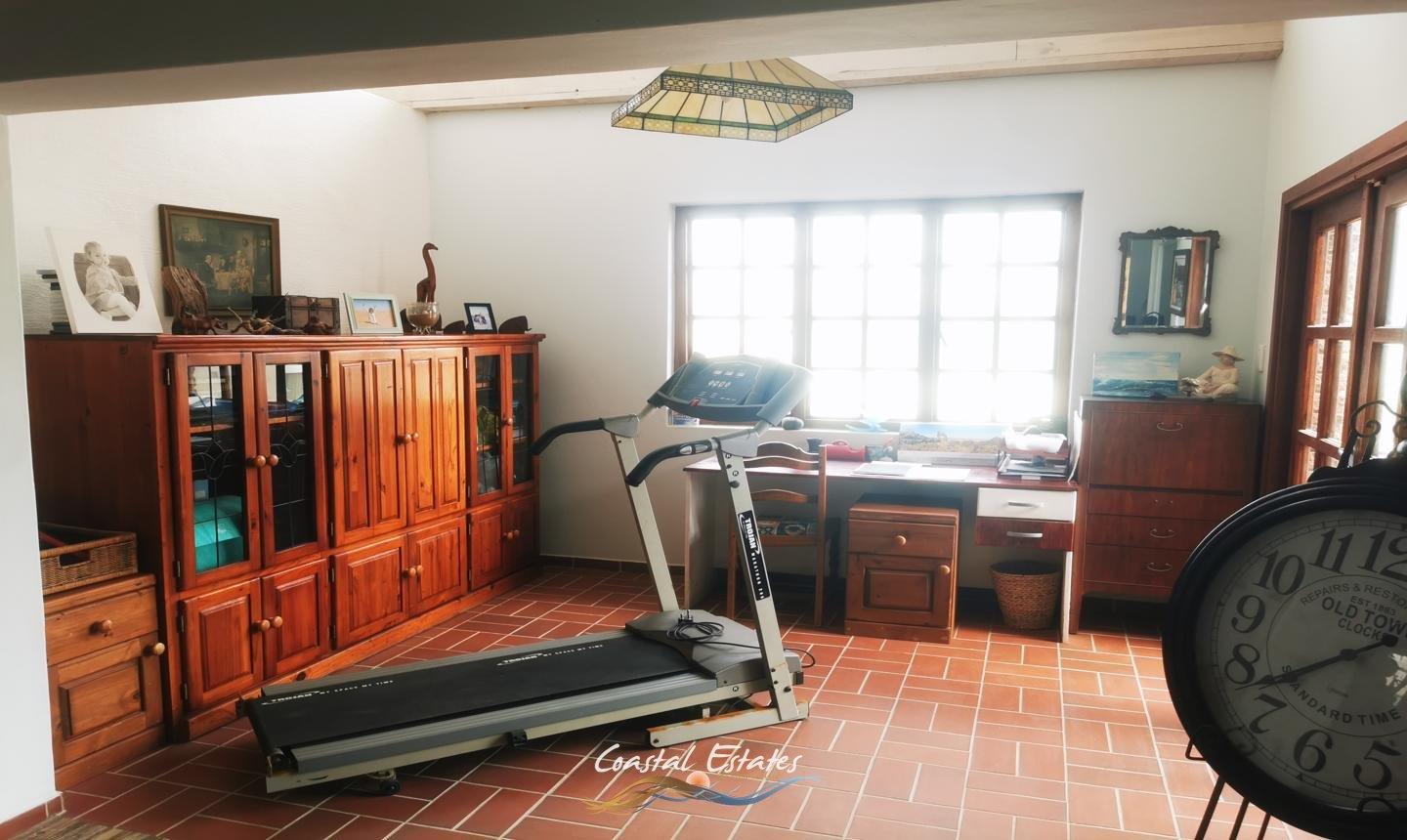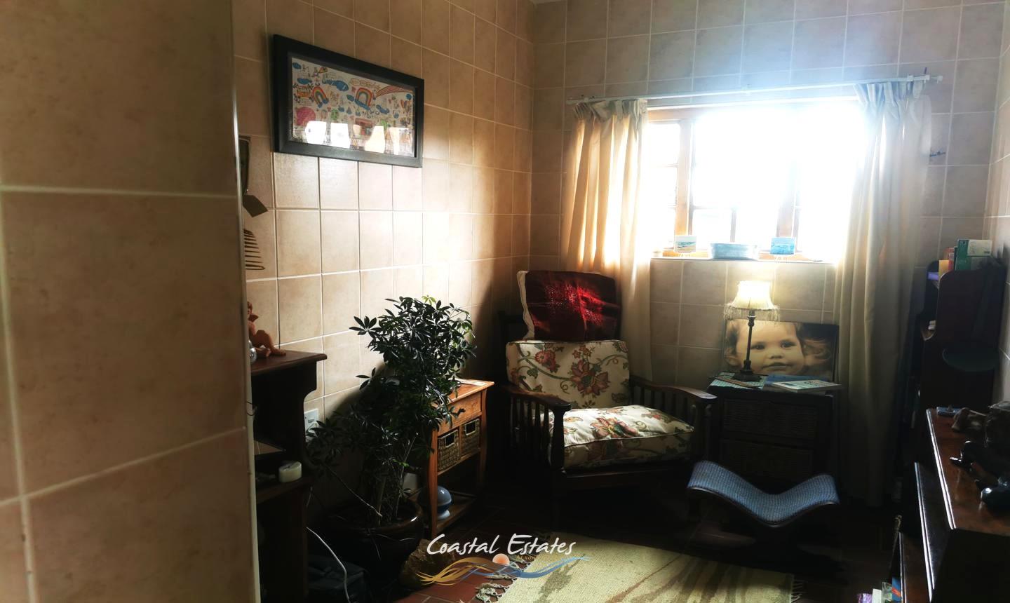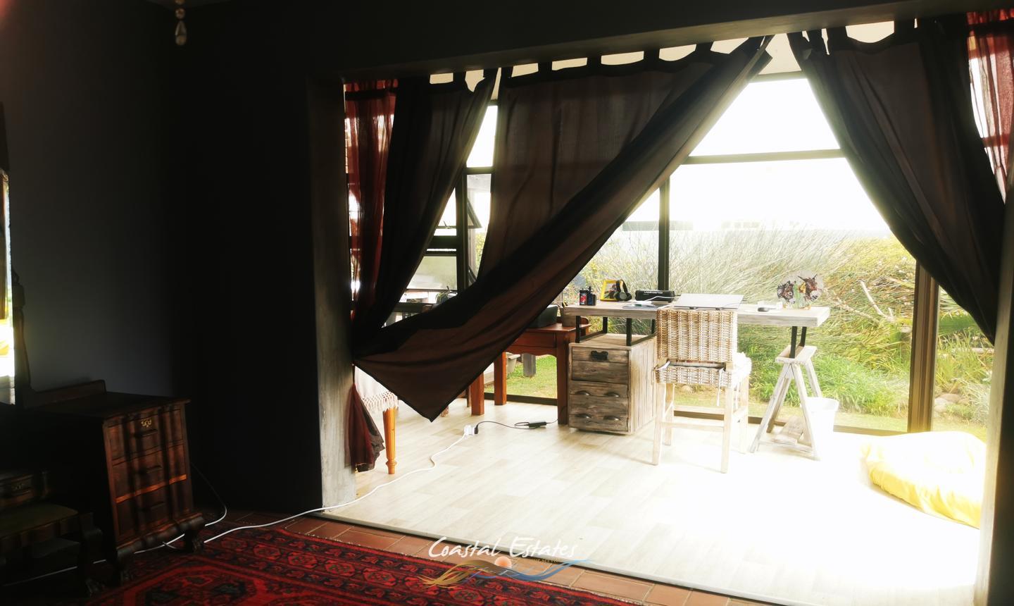 Separate from the main dwelling, the cottage exudes its own unique charm. It boasts a spacious open-plan kitchen with striking wood trusses, a cozy lounge and dining area, a comfortable bedroom with built-in cupboards, and a well-appointed bathroom. The cottage also comes with a single garage and enjoys a private garden and entrance, ensuring complete privacy.