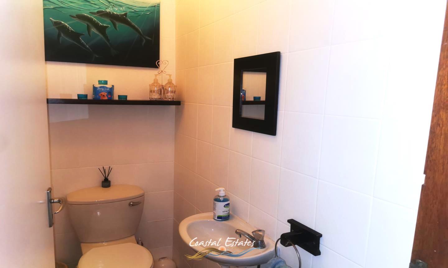 The first floor elevates the living experience with another beautifully designed open-plan kitchen, complete with a scullery. The lounge and dining area include an entertainment space, with windows perfectly positioned to capture breathtaking sunsets. Two balconies offer mesmerizing sea views, while additional rooms like a TV room, study, or storage room provide flexibility for your lifestyle needs. The master suite on this level includes an attached bathroom and dressing room, equipped with bathroom and towel rail heaters for added comfort.